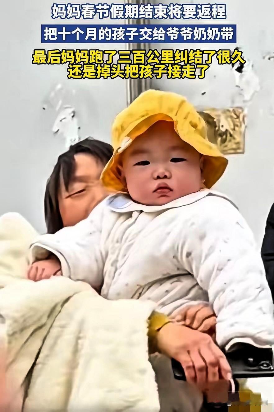 可怜天下父母心!江苏,女子返程前把10个月的孩子留给了老家的爷爷奶奶,可车子开走了300公里,女子始终放不下心,最终还是选择掉头接回孩子,再苦再累还是决定自己带。网友:这是对的 车子驶出三百公里,女子的脑海里全是十个月宝宝的模样,软糯的笑脸、依赖的眼神不断浮现,这份刻在骨子里的牵挂,让她根本无法安心奔赴远方的打拼之路。 无数在外打拼的父母都有过这般纠结,一边是生计的压力,一边是割舍不下的骨肉亲情,把孩子留乡是万般无奈,毅然掉头则是母亲最坚定的选择。 十个月的婴儿正处在最依赖母亲的阶段,童年的陪伴无可替代,物质的富足远不及父母朝夕相伴的温暖,这是女子不顾辛劳,也要亲自带娃的核心缘由。 生活的重担纵然沉重,也压不垮母亲守护孩子的决心,她深知孩子的成长只有一次,缺席的时光无法重来,再苦再累也要守在孩子身边。 网友们的点赞满是共情,大家都明白陪伴是对孩子最好的滋养,比起遥不可及的优渥生活,孩童时代最需要的是父母贴身的爱与安全感。 留守的遗憾是很多家庭的心酸,这位女子勇敢打破无奈,用三百公里的返程奔赴,诠释了最平凡也最伟大的母爱,这份抉择戳中了无数人的内心。 亲情从不会被路途阻隔,母爱更不会因奔波退缩,这场临时的掉头,不是冲动的决定,而是为人母的责任与深爱,是世间最动人的亲情奔赴。 为人父母的幸福,从来不是赚取多少财富,而是亲手守护孩子的成长,见证他的每一次进步,这位妈妈的选择,道出了天下父母最质朴的心愿。 各位读者你们怎么看?欢迎在评论区讨论。