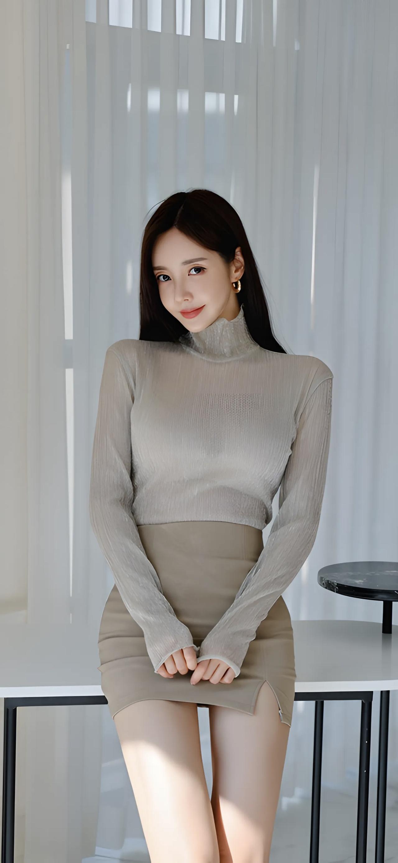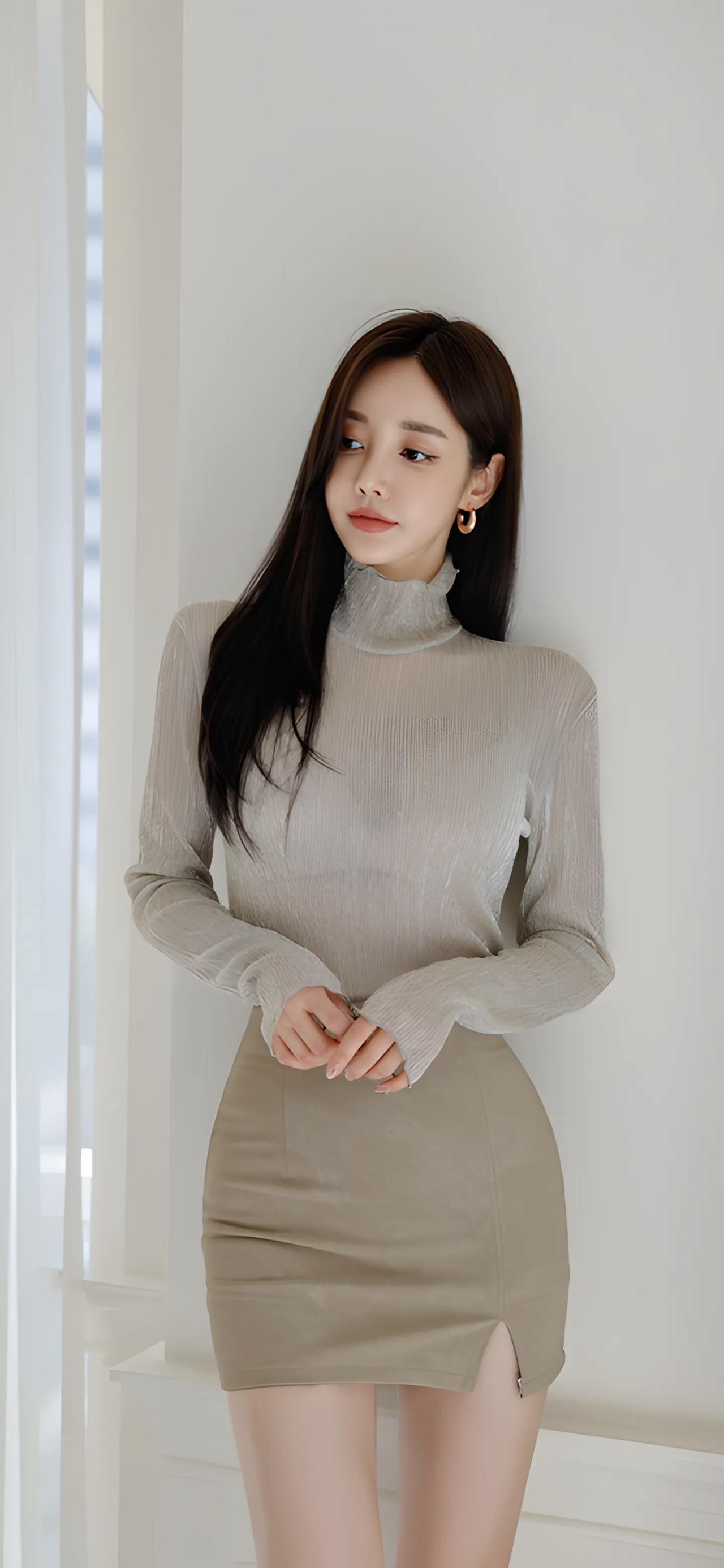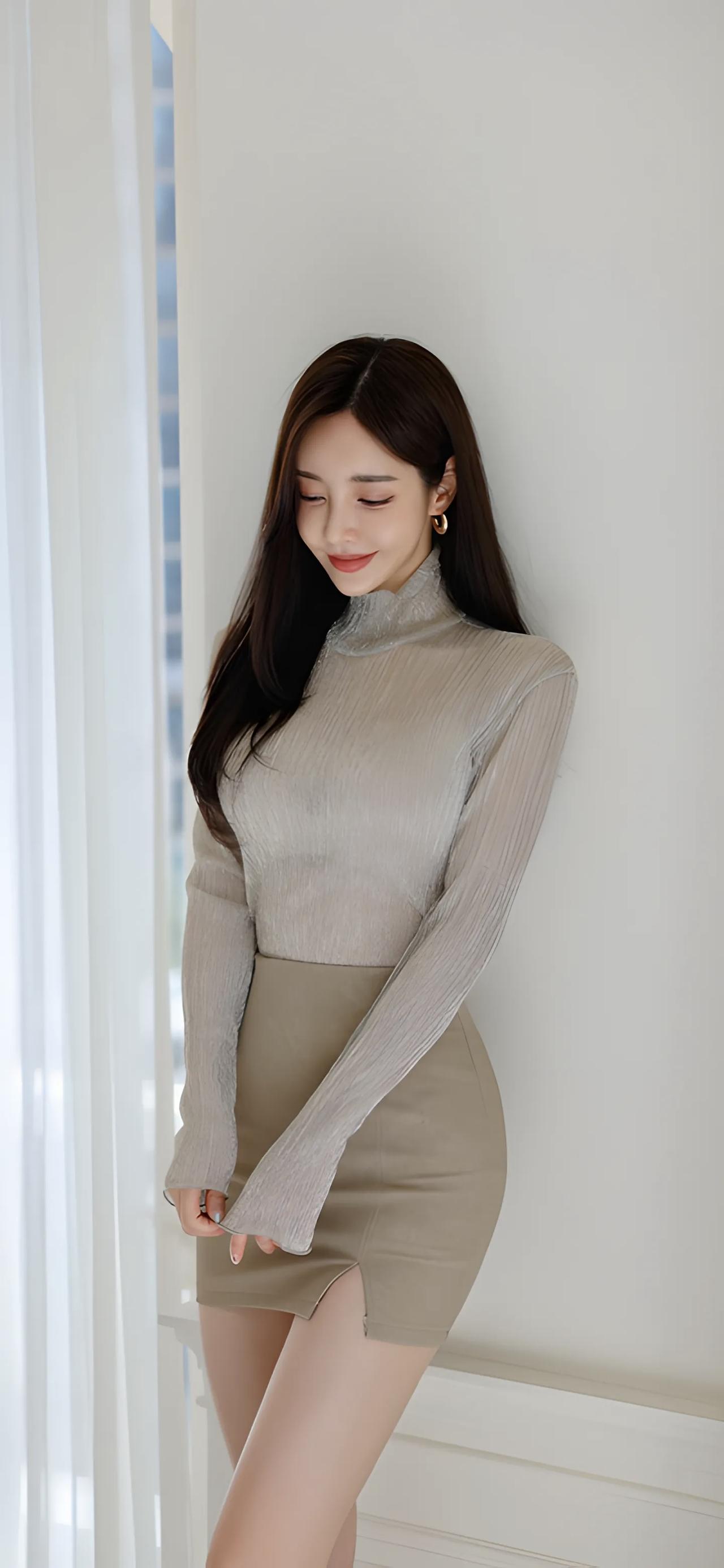 优雅白裙,温柔气质,镜中倒影,梦幻氛围