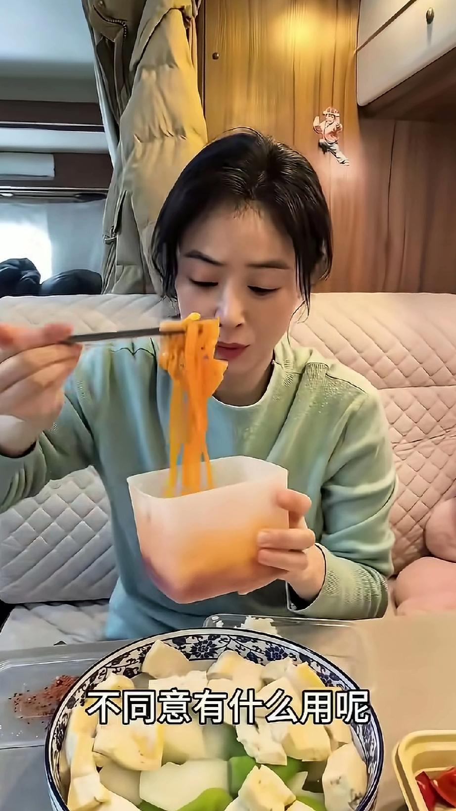 蒋欣在和助理一起吃饭的时候,助理吃的是红油面皮,蒋欣吃的水煮萝卜豆腐,蒋欣看着助理面前的面皮馋的要命,抢过来说要憎一口吃吃,助理表示抗议,蒋欣才不管她呢,挑起一大筷子送进嘴里,美美的吃了起来,还边吃边说:“你不同意有什么用呢”。蒋欣就整天为了吃口饭和助理磨嘴皮子,也是挺可爱的。
