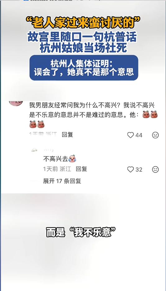 “笑不活了!”近日,北京,一杭州籍女子和朋友在故宫游玩时,看见不少老年人在费力地爬台阶,女孩心有不忍,随口说了一句杭普“老人家过来蛮讨厌的”。好巧不巧,前面有位老人听见了,转过头来看着她,女孩尴尬极了!我真不是那个意思啊! 不少人出门在外,为了沟通方便都会选择说普通话,可方言说习惯了,普通话里就会夹杂着一些,形成特色的地区方言版普通话。这种方言和普通话混用的方式,有时候就会闹出些笑话来。 据媒体2月26日报道,事发当日,该女子正在和朋友在故宫游玩,爬台阶实在太累了,就歇了一会。歇息的时候看到有不少老年人也在游玩。 她想着自己一个年轻人爬台阶都这么累,这些老年人可怎么受得了,就跟朋友随口说了句杭普“老人家过来蛮讨厌的”。“讨厌”在杭州话里有“难办”的意思,女子这句话的意思是想说老人家来爬故宫挺难的,得很累。 可没想到,这时候前方有位老人听到了女子的话,震惊的转过头来看向女子,显然是误会了。她这时也意识到了自己话里的歧义,尴尬的愣在原地,不知道该怎么解释,秒变大型社死现场。 事后,女子把自己的经历发到了网上,有很多杭州人给她作证,证明她不是讨厌老人的意思,还劝她以后说话要么杭,要么普,别说这种有歧义的杭普了。 帖子后面,不少网友表示感同身受,也晒出了自己家乡方言和普通话的不同。 信息来源:《故宫里随口一句杭普话 杭州姑娘当场社死》长江云新闻