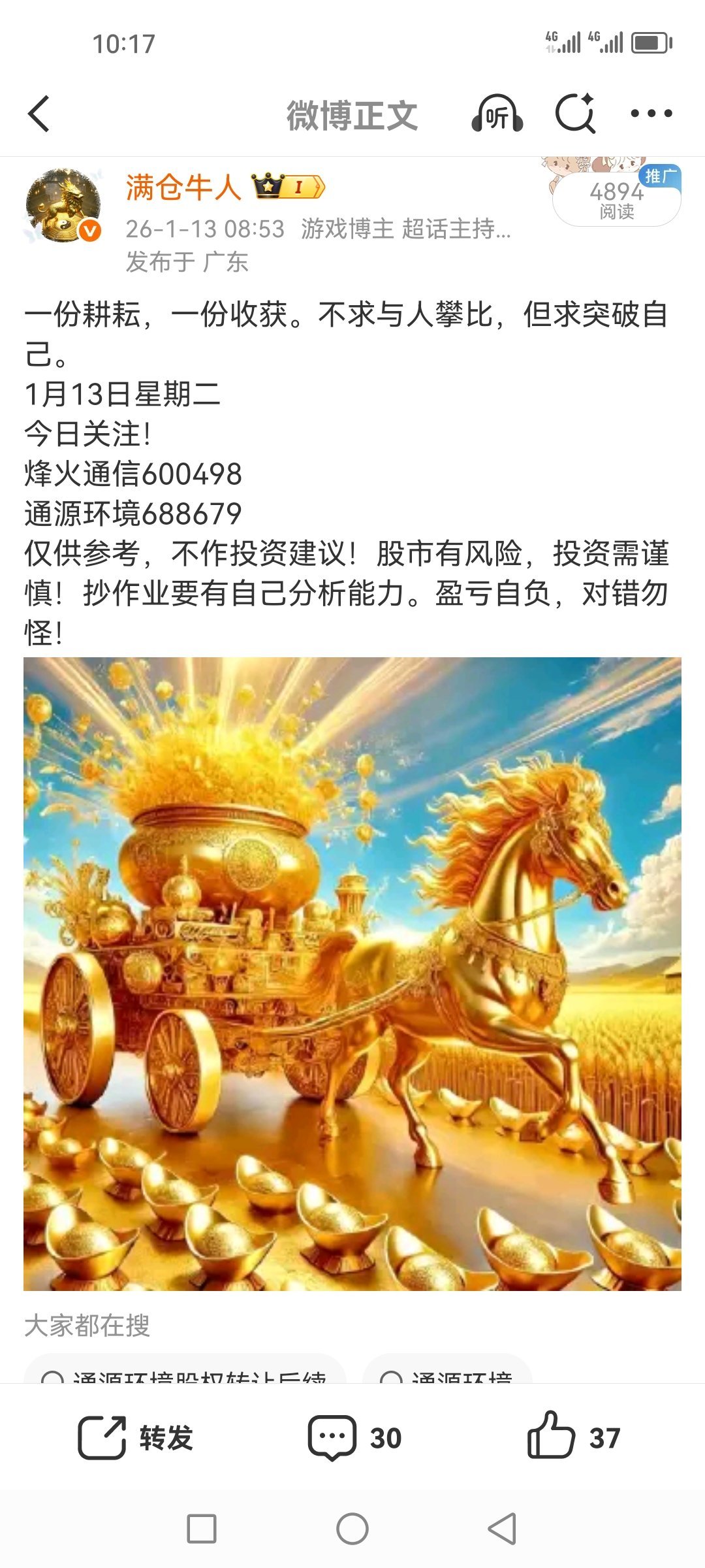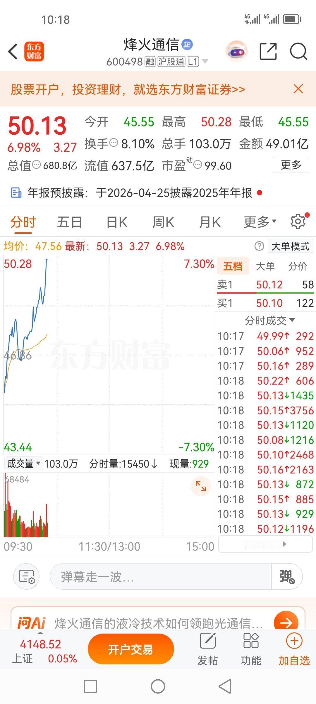 年前分享的烽火通信600498,没想还在涨,真是山不在高,有仙者灵,票不在多,能涨就行!