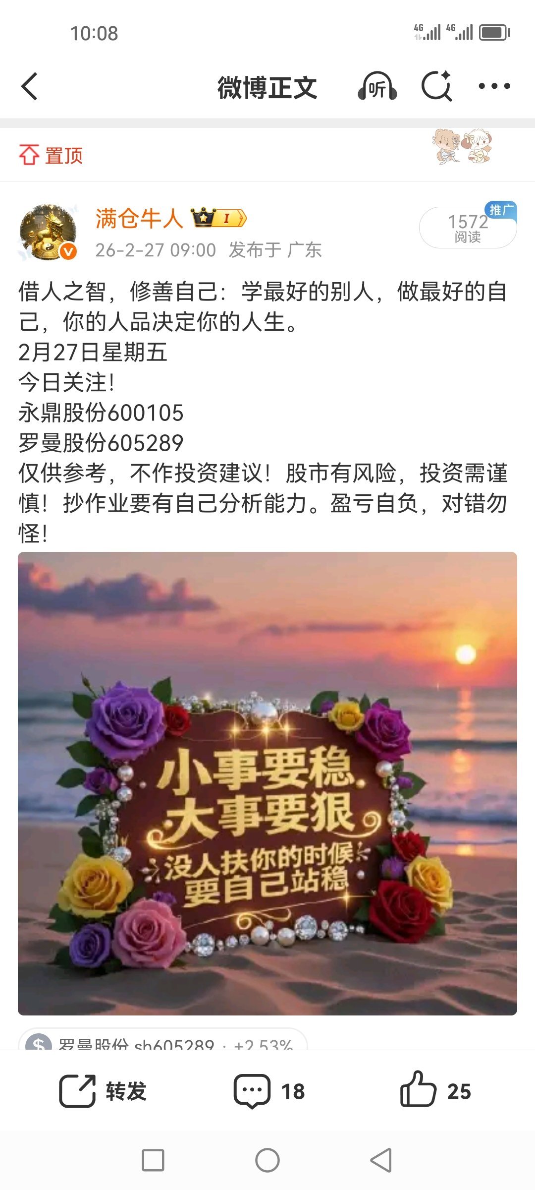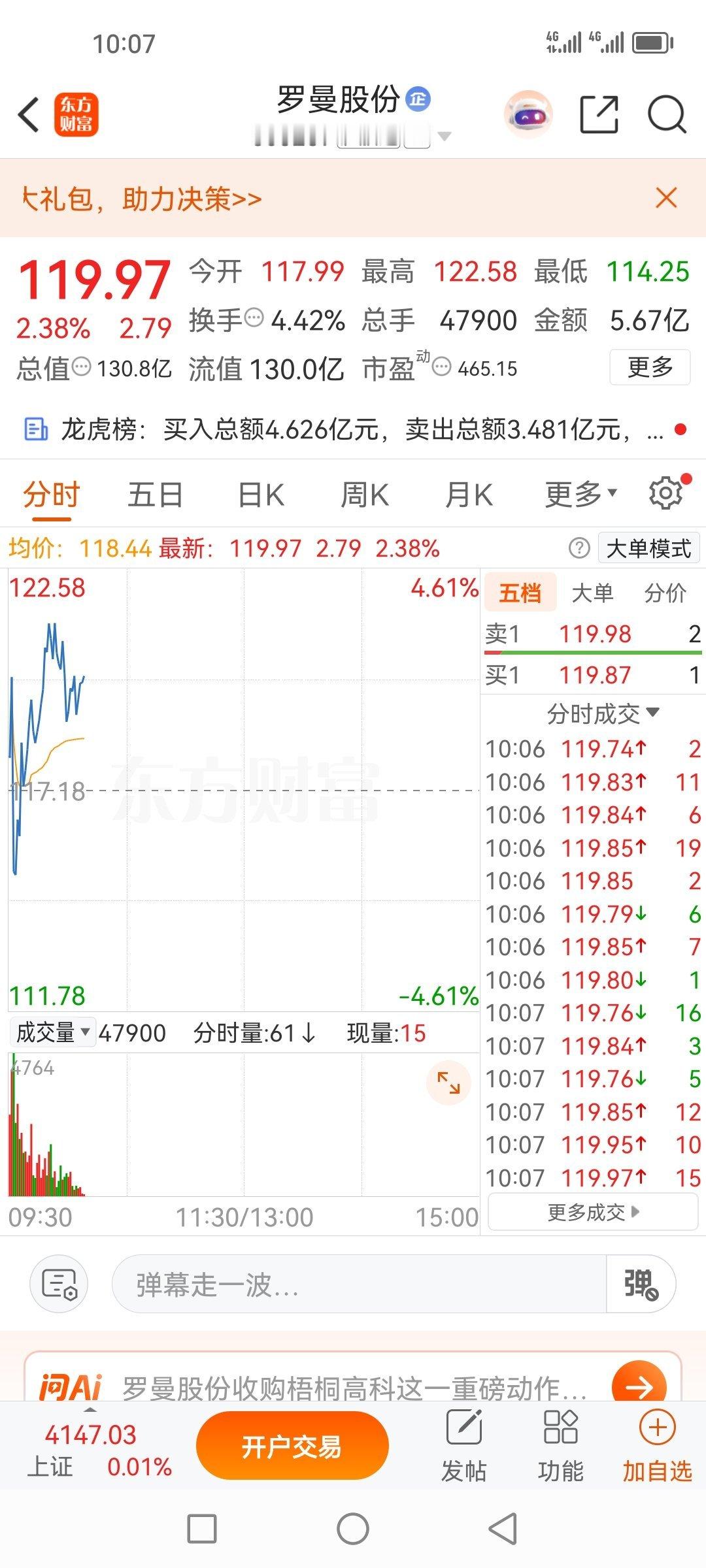 盘前分享的罗曼股份605289,今天又是盈利吃肉的一天,今天下着小雨,而它却是红红火火!