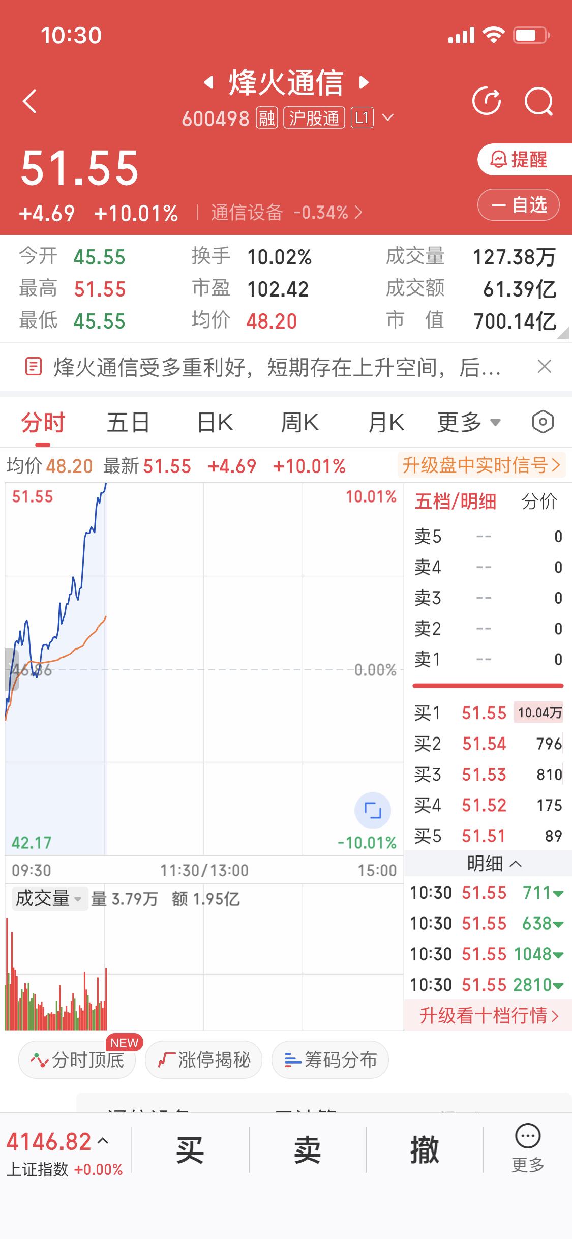 昨天有人问我烽火涨停后炸板走不走,我肯定不会走啊!这开盘四天我已经吃了四个涨停板,简直爽翻。头两天是再升给的,就像意外之财,突然就有了收益,心里那叫一个美。后两天换成烽火发力,直接延续了这涨停的好运。 股票这东西,有时候就得有点耐心。虽然涨停炸板会让人心里有点慌,但想想这连续的涨停,说不定后面还有更大的惊喜。我就打算再拿一拿,看看烽火还能给我带来多少收益,说不定能创造更多涨停神话呢!