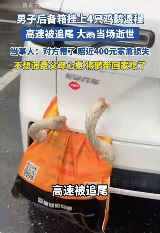 湖北男子后备箱外挂活鸡活鹅返程,湖南永州高速追尾酿“禽”难,赔钱后死鸡死鹅归属引爆全网激辩! 车流不息的湖南永州高速上,一声刺耳的撞击打破了旅途的平静。湖北胡先生怎么也没想到,父母塞满爱意的后备箱,竟成了四只鸡鹅的“断头台”。一场追尾,不仅让爱车受损,更让那几只扑腾着想要呼吸新鲜空气的家禽当场殒命,其中一只大鹅甚至被夹在变形的保险杠间,场面荒诞又令人心酸。 后车司机下车后,盯着那只惨死的鹅愣了神。事故责任清晰,后车全责。车辆损失由保险定损,而那几只无辜丧命的鸡鹅,经协商,对方司机掏出了三四百元作为赔偿。钱货两清?不,故事的高潮和争议恰恰从这里开始。胡先生做了一个决定:他把死去的鸡鹅捡起,带回家,吃掉了。 这个举动,瞬间在网络上炸开了锅。一方网友义愤填膺:“赔了钱,东西就是人家的了,你怎么还能拿走吃?”更有极端类比:“撞死人赔了钱,难道遗体也归肇事者吗?”而另一方则嗤之以鼻:“赔的是财产损失,不是购买尸体!东西的所有权从未转移,自己处理天经地义。”一场关于赔偿本质与财产归属的全民普法大讨论,就此拉开帷幕。 剥开这层法律争议的硬壳,内核是中国人深沉而朴素的情感联结。那不只是价值三四百元的禽肉,那是父母亲手喂养、临行前连夜捆扎的牵挂。胡先生执意带回家吃掉,并非贪图口腹之欲,而是不忍辜负这份跨越山河的心意。父母得知事故后的第一反应——“人没事吧?”——更是道尽了亲情中最珍贵的部分:物质可损,唯愿人安。 然而,情感不能凌驾于安全之上。将活禽悬挂车外,不仅是明确的交通违法行为,更是一个移动的安全隐患。它可能遮挡号牌、影响后车视线,家禽挣扎脱落更可能引发连环事故。这次是鸡鹅遭殃,下次万一殃及池鱼,后果不堪设想。法律的一码归一码在此体现:后车因未保持安全距离负全责赔偿损失,前车违规装载的行为也应接受相应的处罚。 这起看似滑稽的社会新闻,像一面镜子,照见了情、理、法的交织与碰撞。它提醒我们,在承载爱与乡愁的同时,必须把安全规范装在心中。它也让我们思考,在冰冷的赔偿数字背后,那些无法被定价的情感价值该如何安放。或许,最好的答案是:让父母的爱心,以更安全的方式抵达;让游子的感恩,以平安的身影作为回报。 (来源: 根据九派新闻、红星新闻等媒体报道综合撰写) 高速安全 情与法