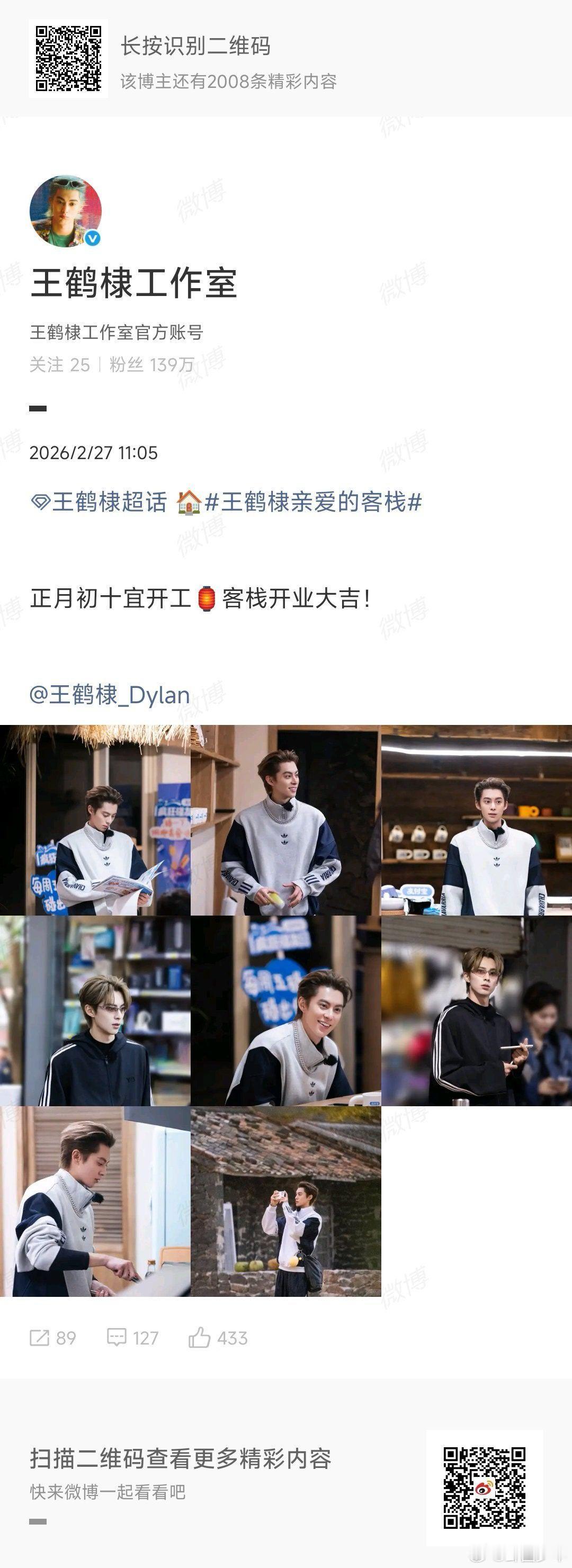 王鹤棣初十开工照王鹤棣初十开工 正月初十启新程,王鹤棣主理的亲爱的客栈正式开业,慢生活欢乐上线~