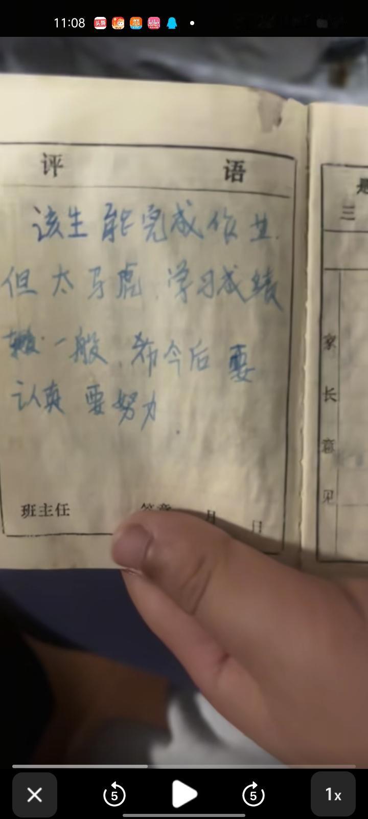 2月22日,滁州市凤阳县。冯女士发视频称,过年回家时,婆婆在房间里收拾东西,两儿子在楼下玩的时候翻出了爸爸小时候的成绩单。翻开学生证第一页,性别本来是“男”,竟写成了错别字,看完成绩单才发现,孩子爸爸小时候是调皮马虎的。虽然孩子爸爸的小学成绩不好,但是为人做事很负责,孩子调皮时也会教育他们。