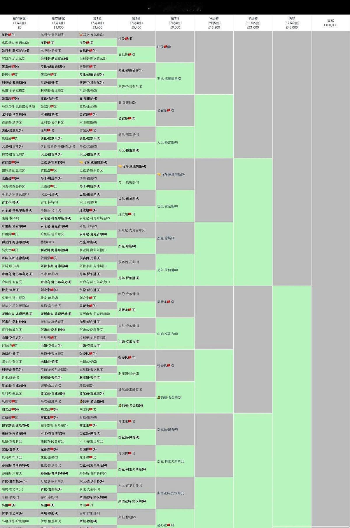 15万英镑大奖,眼看艾伦要“躺赢”了,现在变数来了! 威尔士公开赛,本土系列赛收官战。艾伦本来领先奖金榜,结果首轮出局,把15万英镑额外大奖的悬念彻底点燃。 现在,周跃龙必须夺冠,小司机(利索夫斯基)必须进决赛,才能反超艾伦。不然,艾伦啥也没干,钱就到手了。巧的是,周跃龙和小司机都在下半区,可能提前相遇,这下可热闹了。 赵心童最近手感火热,连拿两冠,奖金拿到手软。如果他在半决赛遇上周跃龙,这比赛就有意思了。会是全力阻击,还是“成人之美”呢? 中国军团这次表现亮眼,五位选手闯入16强。但15万英镑的诱惑,足以让任何一场比赛都火药味十足。