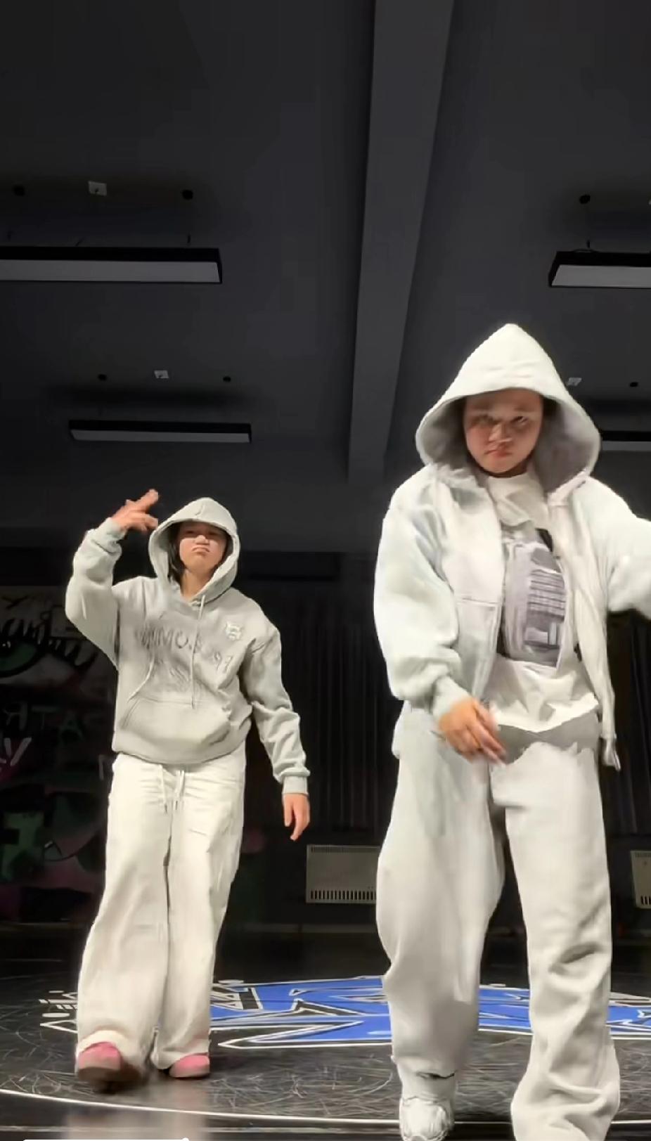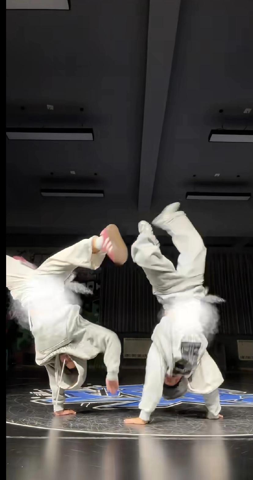 全红婵 刘清漪 同框跳街舞太可爱啦 好久没见到婵宝了,一出来就给大家带来惊喜! 这次和街舞冠军刘清漪一起同框跳舞,两个人都穿着浅灰色的卫衣套装,看起来特别青春有活力。 全红婵跟着刘清漪一起学街舞,动作学得有模有样,从简单的舞步到帅气的同步倒立,都做得特别到位。 看着婵宝开心跳舞的样子,真的太治愈了,又可爱又飒! 全红婵 刘清漪