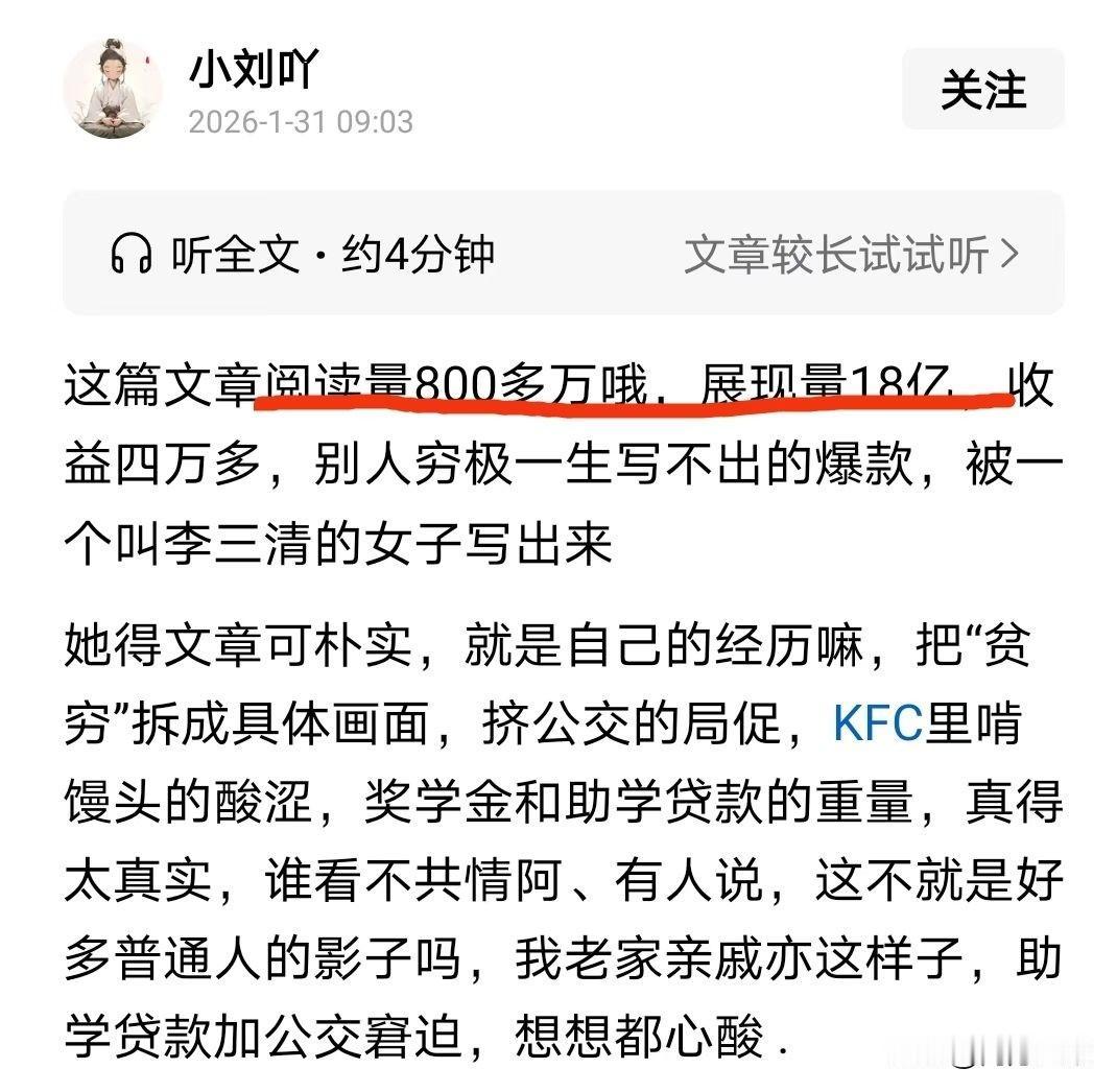 展现量18亿,阅读量800多万,单篇收益4万多。看过这篇文章,确实厉害,并不是写得多有深度,是大众共鸣度太高了。我想说什么呢?东拉西扯拉家常的时代已经过去,高谈阔论天花乱坠也不可取,“同理心、温暖人心、摆事实讲道理”才是正途。 (图片来源于网络) 幸福和什么最有关系 你觉得人生怎样过才有意义 人生就像一场赌博,怎样才能赌赢