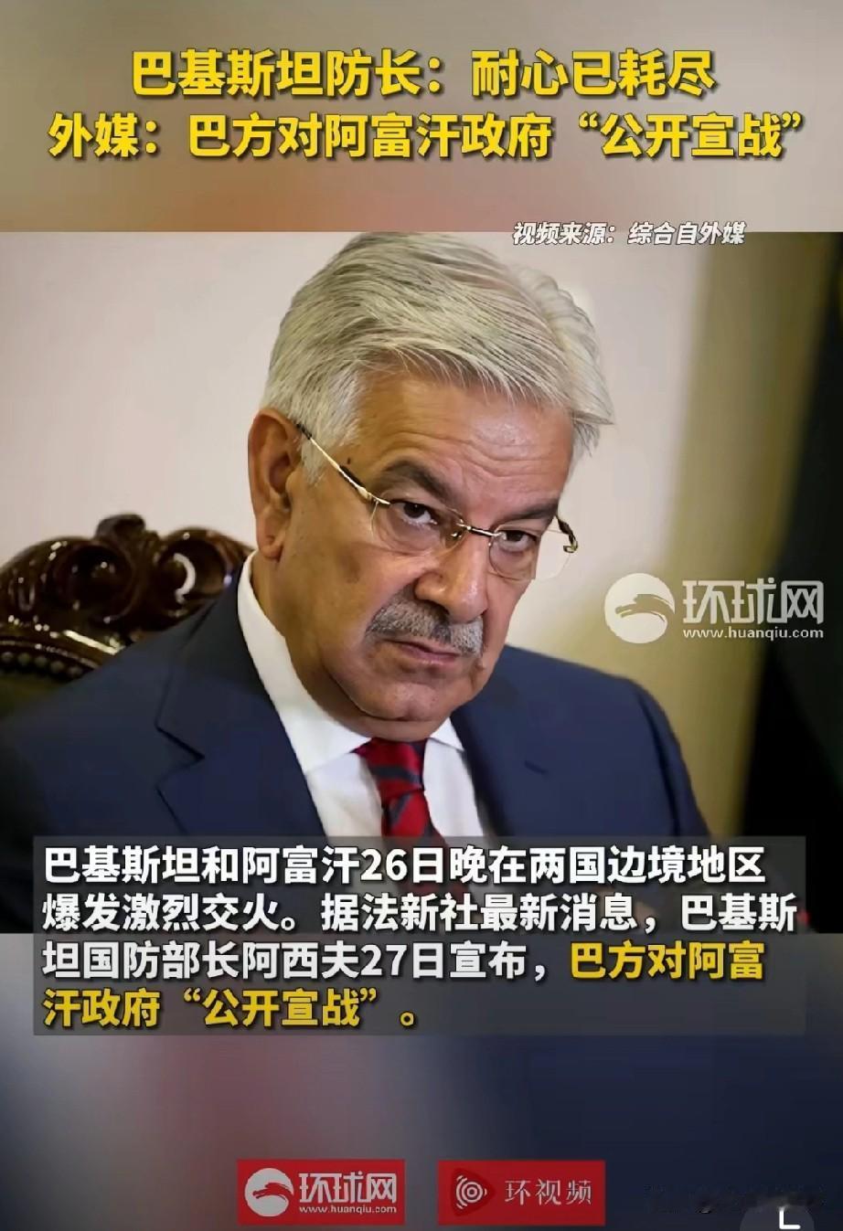 担心的还是来了!巴基斯坦正式摊牌:对阿富汗公开宣战! 刚从环球网刷到的消息,巴国防部长直接放狠话:耐心已经耗尽,现在就是公开战争! 边境一夜激战,巴军凌晨直接搞空袭,阿指挥所、弹药库、后勤基地一锅端。 别以为是小打小闹,这是两个主权国家正面撕破脸。 之前谈了三轮停火,卡塔尔、土耳其轮番调解,全白谈。 边境打了半年,忍到今天彻底绷不住。 说白了就是一个死结: 巴方说你护着武装分子越境搞事, 阿方说你动不动越境空袭侵犯主权。 谁也不让,谁也不服,最后直接开打。 世界真的越来越乱,战火一起,最惨的永远是普通老百姓。 下一步会不会全面升级?会不会引来外部势力插手?咱们持续紧盯后续! 国际