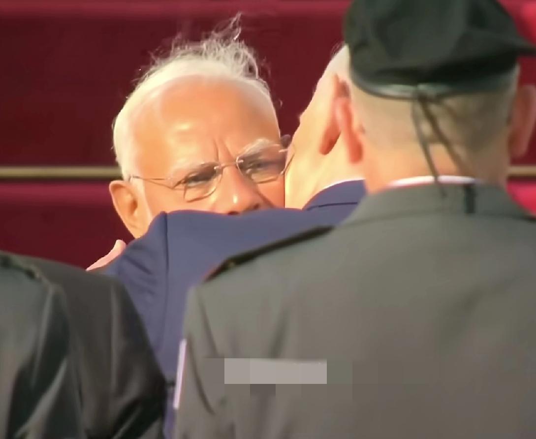 内塔机场送别,抱住莫迪朝脸亲起来了!即使礼仪,两个中老年男人,看着真辣眼睛!内塔老婆也在场,夫妇俩一起去送,来时也是一起去接,而且送别还是红地毯、礼仪队,这规格真是空前绝后!莫迪对此次以色列之行,肯定终身难忘!可见以色列内塔尼亚胡做足了功课!面子全都有了,里子到底是啥?各怀鬼胎,各取所需!