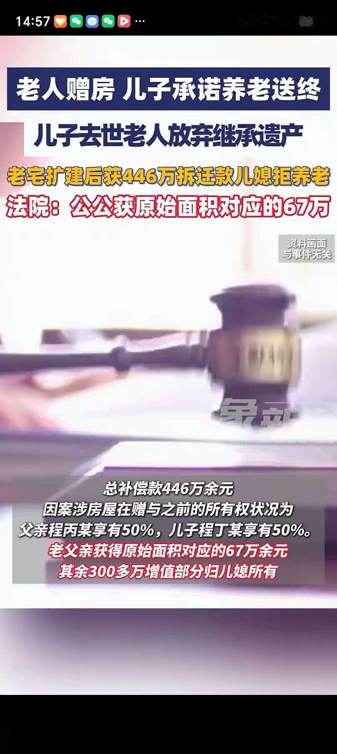 新疆八旬老人赠房换养老,儿媳拿446万拆迁款后翻脸断供,法院判决揭开人性与金钱的残酷博弈 当亲情遇上巨额拆迁款,人性的底色瞬间暴露无遗。新疆一位程姓老人,十多年前将300平方米老宅赠与儿子,只换一句“负责养老”的承诺。儿子儿媳接手后扩建房屋、开办宾馆,面积增至千余平。2020年儿子去世,房产由儿媳赵某继承。次年拆迁启动,446万补偿款到手,赵某竟直接停掉老人的生活费医疗费。八旬老人无奈将儿媳告上法庭,一场关于金钱、承诺与亲情的拉锯战就此引爆网络。 法院审理认为,当初赠房属于“附义务赠与”,儿媳继承财产便需履行养老义务。赵某拿到拆迁款后拒绝赡养,已构成根本违约。法律不会纵容忘恩负义之举,判决支持老人撤销赠与的诉求。但故事并未止步于此——判决不仅关乎对错,更精准剖开了利益与贡献的复杂纠葛。 关键转折在于房屋增值部分的认定。儿媳拿出证据,证明扩建的700多平方米由夫妻二人出资改造,这部分增值不属于原始赠与范围。法院最终采纳该意见,判决原始老宅对应的67万归老人,剩余379万归儿媳。既捍卫了契约精神,也承认了后续投入的价值。这份判决被网友称为“情法两全的标杆”。 舆论场上炸开了锅。有人痛斥儿媳“拿钱变脸”,将老人置于孤苦境地;也有人认为判决公平,“自己的投入自己享”。但更深层的矛盾在于:当家庭承诺遭遇金钱考验,多少亲情能经得起推敲?老人当年赠房,本质是托付晚年;儿媳拿到巨款后毁约,实则是将财产凌驾于伦理之上。 这起纠纷映照出无数中国家庭的隐痛。父母倾其所有资助子女,却难换晚年保障;子女继承财产后,却将赡养视为负担。法律可以划分钱财,却修复不了撕裂的信任。判决书上的数字再清晰,也抵不过老人那句“心凉了”带来的震撼。 值得深思的是,此案中儿媳的行为并非个例。在拆迁、继承等家庭利益分配节点,类似冲突屡见不鲜。有些人将亲情视为可割舍的成本,将承诺视作可撕毁的纸张。但社会共识始终坚定:财富或许能改变生活,却不能买断良知。 法院的终审判决,既是对失信者的警示,也是对传统孝道的重申。它告诉所有人:接受馈赠的同时,必须扛起责任;追求利益的同时,不能践踏底线。老人的67万,买不回失去的亲情,却至少撑起了晚年的尊严。 这场官司落幕了,但留给社会的思考远未结束。当我们在家庭与利益间徘徊时,不妨记住:金钱有价,情义无价;契约可约束行为,唯有人心能温暖岁月。愿所有老人都能被温柔以待,愿所有承诺都不被金钱染指。 (来源:综合大象新闻、新疆高院判决书及网络公开报道) 拆迁款纠纷 赡养义务