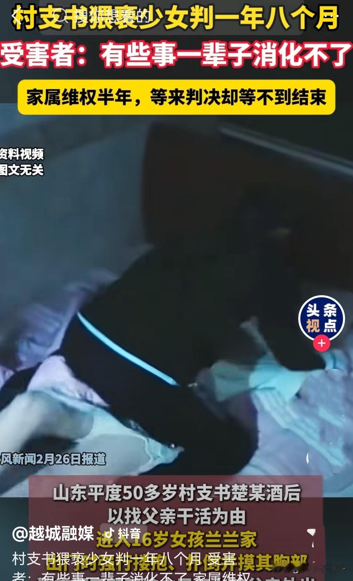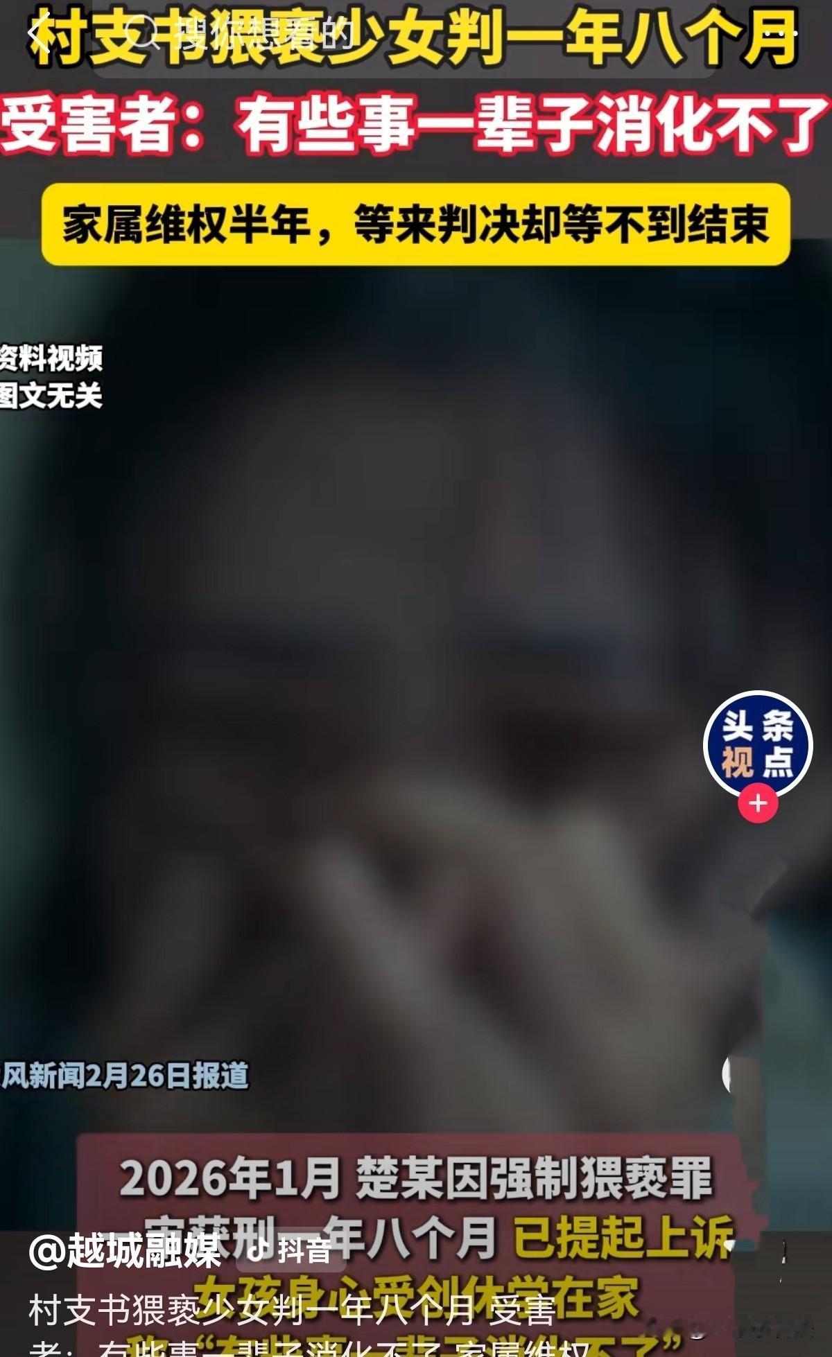“太可恨了!”山东青岛,16岁女孩父亲脑子受过伤,反应迟钝,母亲是聋哑人,这家人已很可怜。谁知,50多岁的村支书就着喝了不到二两白酒,偷偷溜进她家,趁她母亲在睡觉,假称让她帮着看狗,突然从后面将她抱住,女孩挣扎后被扑倒,随后对她上下其手。女孩将此事告诉家人,4天后,爷爷忍无可忍报了警。村支书矢口否认,认为女孩家没办成低保,肆意诬陷。可更多证据让他无以狡辩! 2025年7月23日,三伏天的燥热裹着整个村子,16岁的兰兰怎么也想不到,这个再普通不过的午后,会成为她一辈子都挥之不去的噩梦。 兰兰家的日子过得不容易,妈妈是聋哑人,听不见也说不出,爸爸早年受了伤,脑子反应慢半拍,家里大大小小的事,全靠住在同村的爷爷奶奶撑着。 这天一早,爸爸又出门干体力活了,妈妈在卧室里熟睡,兰兰穿着内衣裤坐在屋里看电视,家门只是虚掩着,想着村里都是熟人,没特意关严。 50多岁的楚某是这个村的村支书,中午和朋友聚餐时,喝了二两52度的白酒。 走到村口路上,他还迎面碰上了兰兰的爸爸,对方正外出干活,楚某随口打了个招呼。 他晃悠着回家躺了没多久,下午1点左右,他突然想起来啥,爬起来径直往兰兰家走。 他悄悄推门进来,连一点脚步声都没发出来。正在看电视的兰兰吓得一哆嗦,慌忙摸过睡衣套在身上,怯生生地抬头问:楚支书,你找我爸吗?他刚走了。 楚某脸上堆着敷衍的笑:是找你爸帮忙干点活。说完转身往外走,随后又折返了回来。 兰兰以为他还有别的事,便拿手机想给爸爸打电话,却被楚某一把拦住。他又对着兰兰摇头,示意她别叫醒卧室里的妈妈。 兰兰不敢反抗村里的干部,只能局促地站在一旁,楚某往兰兰的脸上扫了两眼,眼珠滴溜转了下说:我怕你家狗咬人,你送我出门吧。 兰兰家有三只散养的土狗,一只是中型犬,两只是小型犬,平日里顶多吠叫两声,从来不会主动咬人。 兰兰没多想,拿着手机往外走,可走到门口、楚某突然猛地转过身,抱住了她。 恐惧像潮水一样瞬间把兰兰淹没,她拼了命挣扎,可楚某身强力壮,她根本挣脱不开。 慌乱中兰兰找准空隙往前跑,楚某却快步追上来,一把将她扑倒在地,单膝跪在她身上,伸手就去掀她衣服。 兰兰急得直踢腿,伸手去掐楚某的脖子,可这点力气在成年男人面前根本不值一提。 她急得哭喊着向自家狗求助,楚某却愈发肆无忌惮,嘴里说着轻薄的话:我就摸摸,让我看看… 兰兰连打楚某五六巴掌,哭着骂他:你有老婆和妈妈,你去摸她们去! 可楚某依旧没停手,直到兰兰的哭声越来越绝望,带着崩溃的颤抖,楚某才慌慌张张地跑了。 兰兰趴在地上,哆嗦着拿手机给爸爸打了电话,又跑到卧室,用手语把刚才的遭遇比划给聋哑妈妈。 妈妈瞬间慌了神,穿着拖鞋就拉着兰兰往奶奶家跑。 奶奶带着他们娘俩找到楚某家,兰兰一看见楚某吓得躲在奶奶身后,身子不停打哆嗦。 可楚某却一脸轻描淡写,拿“喝了酒”当借口搪塞,说只是箍了下孩子的肩膀,根本没做别的事。 那天下午,爷爷又联系了村妇女主任,可妇女主任当时正在医院,只在电话里劝老人别往外说,传出去对孩子不好。 绝望的兰兰误以为抖音上的陌生人是警察,颤抖着打下私信,诉说自己的遭遇,甚至崩溃地说:我只想告他,让他死,我也有些活不下去了。 直到7月27日,爷爷终于下定决心报警! 在派出所里,兰兰终于放下了所有戒备,一字一句地向民警诉说了那天的所有细节。 从楚某推门而入的那一刻,到被扑倒在地的恐惧,再到崩溃大哭的瞬间,这个懂事的女孩,把所有的委屈和痛苦都倾诉了出来。 楚某始终拒不认罪。他辩称自己只是让兰兰帮忙挡狗,就算有肢体接触也是无意的,根本不存在猥亵行为。 他的律师更是离谱,以“没有直接DNA证据、邻居没听见动静”为由,主张楚某无罪,还无端猜测兰兰一家,说他们是因为低保没办成,才故意诬陷楚某。 《刑法》第237条规定,以暴力、胁迫或其他方法强制猥亵他人或侮辱妇女的,处5年以下有期徒刑或拘役。 法院经过审理查明,警方收集的书证、证人证言、现场勘验笔录、监控视频等多项证据,已经形成了完整的证据链,足以证明楚某强制猥亵的犯罪事实。 2026年1月22日,法院作出一审判决,楚某犯强制猥亵罪,判处有期徒刑1年8个月。 本以为正义终于到来,兰兰一家却收到了楚某不服判决、提起上诉的消息。 事发后,兰兰在学校常突然呼吸急促,被120紧急送医。 从2025年下半年被迫休学,她变得越来越敏感脆弱,说哭就哭,整日活在恐惧和痛苦里。 她曾在朋友圈写:我不是消化器,不是什么事都能过去,有些事,我一辈子都消化不了。 兰兰未回校园,在家人陪伴下艰难地对抗着心里的创伤。 两位年迈的老人,为了给孙女讨一个公道,四处奔波,希望法律能给这个受尽委屈的女孩一个公正的结果! 对此您怎么看?