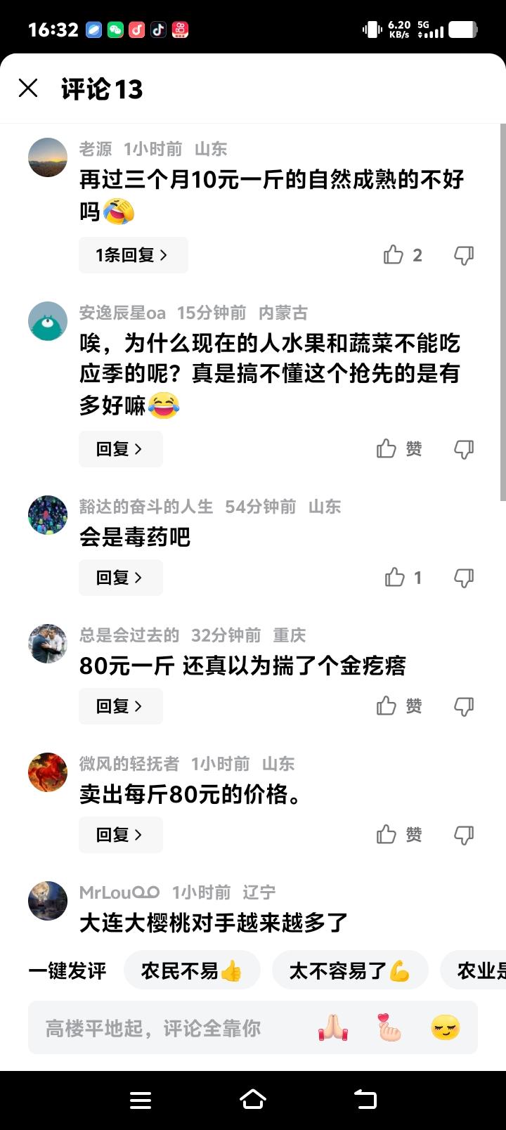 青岛果农“逆天改命”:80元一斤的“红宝石”背后,藏着中国人最狠的生存智慧 来源:青岛早报 当北方大地还在春寒料峭中沉睡,青岛平度云山镇的大棚里,却已是一片灼灼其华的“红”。80元一斤的“天价”大樱桃,像一颗颗红宝石挂在枝头,刺痛了无数人的神经。有人嗤之以鼻,有人望而却步,但鲜少有人追问:这抹反季节的嫣红背后,究竟是怎样一场与时间、与市场的生死竞速? 这不是简单的“抢鲜”,这是一场现代农民用智慧与汗水发起的“农业突围战”。当大多数人还在争论“应季”与“反季”孰是孰非时,像何洪礼这样的新农人,早已跳出传统的思维围城。他们手中的温度计、水肥一体化设备,就是最锋利的武器。智能温控精准模拟季节更迭,硬是在寒冬里“催”出了春天的果实。这哪里是违背自然?这分明是人类用科技,为自己多挣得了一份选择生活的权利。 每一颗提前两月上市的樱桃,都凝结着“时间差”里的惊人利润。春节前的市场空白,是黄金窗口。何洪礼们赌上的,不仅是投入的成本,更是对市场脉搏的精准拿捏。从“齐早”品种的引进,到“背上枝”修剪法的颠覆,每一步都是对“面朝黄土背朝天”旧观念的彻底革命。他们修剪的不是树枝,是僵化的思维;他们计算的不是产量,是农业的附加值。 面对“80元一斤是抢钱”的质疑,账本会说话。一亩大棚,盛果期产值可达20多万元。这高昂的价格,是为技术、风险与稀缺性买单。它让农民看到了,土地不仅能产出温饱,更能产出尊严与希望。当“新农人”成为令人羡慕的职业,乡村振兴才有了最坚实的内核。这抹“反季红”,红的是果子,暖的是人心,照亮的是无数个乡村的未来。 当然,争议从未停止。“科技狠活”与“自然熟”的争论,本质是不同生活理念的碰撞。有人追求极致的时令本味,有人则乐于享受科技带来的便利与丰富。市场自有其分流,无需彼此说服。但我们必须看到,正是这些敢于“第一个吃螃蟹”的人,用实践拓宽了农业的边界,保障了供给的多元。他们的探索,值得一份尊重。 从云山镇10公里的樱桃长廊,到全国各地的特色产业镇,中国农民正用最朴实又最前沿的方式,回答着关于生存与发展的时代之问。他们不再只是被动的守望者,而是主动的创造者。这80元一斤的樱桃,早已超越水果本身,它是一个信号,宣告着中国农业正从“汗水驱动”迈向“智慧驱动”的新纪元。 所以,当我们下次看到这些“非常规”的农产品时,或许可以少一分批判,多一分理解。每一颗超前的果实背后,都可能藏着一个家庭对美好生活的全力奔赴,藏着一个产业升级的惊险一跃。这抹鲜艳的“反季红”,是中国农民不服输、不认命的生动注脚。 现代农业崛起 新农人智慧