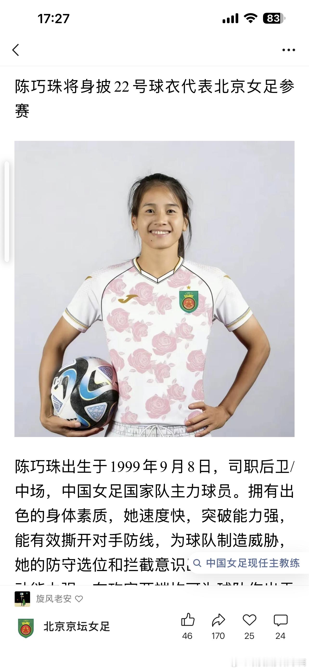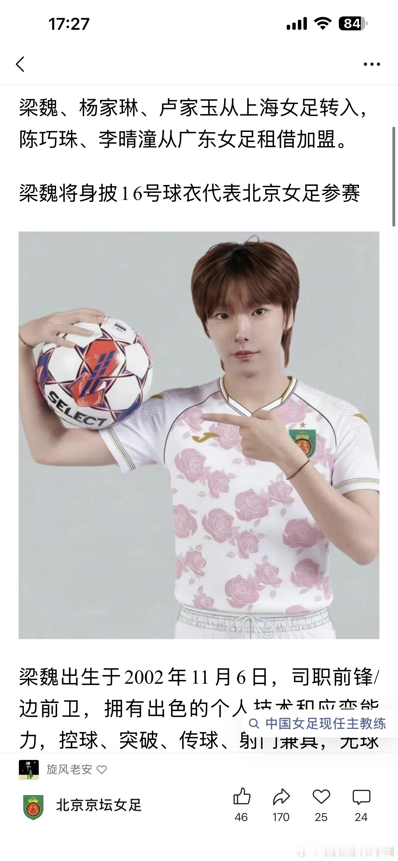 北京女足这个算大手笔了,两名国脚,一名国青的,还有两名也是实力派,只是还有一个长春的司雨怎么没官宣,之前在广西的比赛已经上了啊,现在就看外援了,争取再来一个,今年第一次要打亚冠的,另外官方公众号官宣了,官方微博也应该发一下