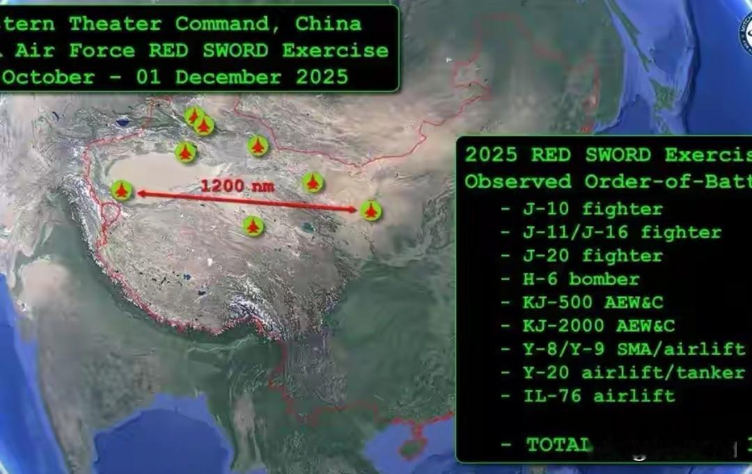 2025年末,中国在西北8个基地举行疑似“红剑”演习,跨度超1200海里、持续五