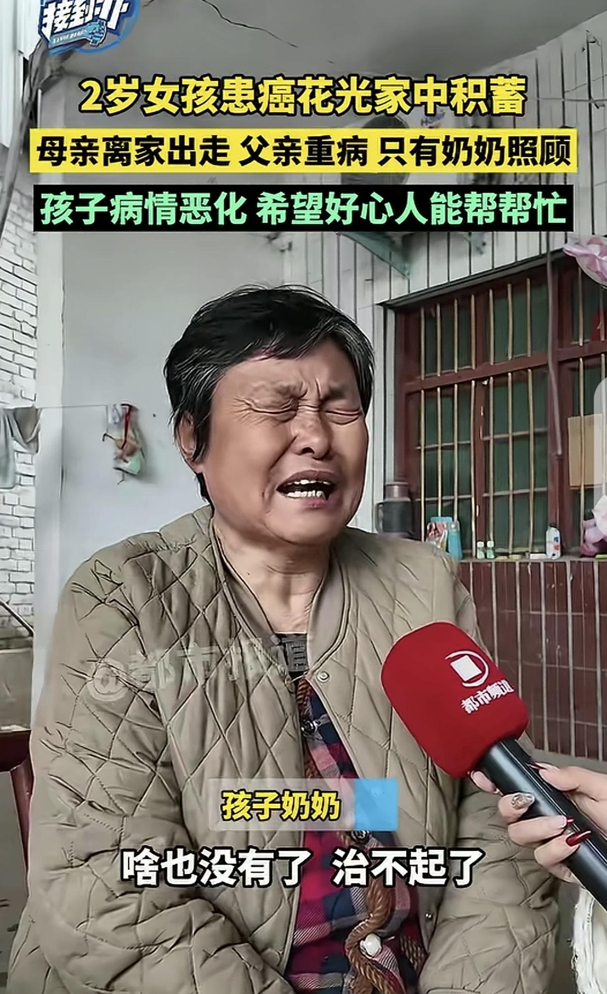 “这就是命!”河南南阳,一2岁半女孩,9个月大的时候,被确诊盆腔癌,肿瘤压迫尿道,导致孩子不能自主排尿,爸爸精神有问题,妈妈绝望的离家出走,奶奶一把年纪照顾孙女,崩溃大哭:俺儿重病,儿媳妇跑了,啥也没有了,俺打算没钱就不治了,治不起了! 一年仅2岁半的小女孩,在她9个月大的时候,命运就露出了狰狞的面目。 原本粉嘟嘟、活泼可爱的小女孩,被确诊患上了盆腔癌,肿瘤压迫尿道,让她再也无法像正常孩子一样自主排尿。 每次看到孩子憋得小脸通红,痛苦地扭动身体,家人的心就像被刀割一样。 孩子的爸爸,本应是家庭的顶梁柱,却因为精神方面存在问题,生活自理都成问题,更别说照顾孩子、扛起家庭的重担了。 他常常呆呆地坐在角落里,眼神空洞,对周围发生的一切浑然不知。 而孩子的妈妈,在得知女儿患上如此重病后,被绝望吞噬。 她看着孩子被病痛折磨,看着这个摇摇欲坠的家,她崩溃了,最终,她选择离家出走,只留下年幼的孩子、患病的丈夫和年迈的婆婆。 孩子的奶奶,成了这个家最后的依靠。她每天天不亮就起床,给孩子做饭、喂饭,小心翼翼地照顾着孩子的生活起居。 因为孩子不能自主排尿,她要定时给孩子导尿,动作很轻,生怕弄疼了孩子。 可即便如此,看着孩子一天天被病痛折磨,身体越来越虚弱,哭的声嘶力竭,她的心里充满了无助和绝望。 奶奶抱着孩子坐在床边,看着孩子憔悴的小脸,泪水忍不住夺眶而出。 奶奶跟媒体记者嚎啕大哭:俺儿重病,儿媳妇跑了,啥也没有了,俺打算没钱就不治了,治不起了! 为了给孩子治病,家里已经花光了所有的积蓄,还欠下了不少外债。 可孩子的病情却没有丝毫好转的迹象,后续的治疗费用就像一个无底洞,让这个贫困的家庭看不到一丝希望。 这个年仅2岁半的小女孩,本应在父母的呵护下快乐成长,本应在阳光下尽情玩耍,可如今却被病魔困在小小的病床上,承受着常人难以想象的痛苦。 这个破碎的家庭又该何去何从?真心希望社会上的爱心人士能够伸出援手,拉这个可怜的孩子一把,让她能够战胜病魔,重新拥有一个美好的童年。 有人说,哭的好揪心。如果我是家长,我无论如何都治。 这应该是基因问题,论婚检的重要性,同时婚检内容必检项目必须增加,为后代子女负责。所以啊,年轻人结婚一定要检查身体,家族遗传病吏!这才是真正的太惨了!孩子惨父母奶奶都苦。 在有些时候放弃并不是一种不好,可能是一种最好的解决办法。实事证明,奶奶在最关键时刻都挺身而出,妈妈可以离婚不要孩子,但是奶奶都舍不得不要。 这小女孩的遭遇实在太让人揪心,才2岁半就遭这么大罪,家庭还支离破碎。 孩子爸爸精神有问题,妈妈选择逃离,虽说能理解妈妈被绝望压垮,但把孩子丢下实在不该。奶奶一把年纪撑起这个家,让人心疼又敬佩。 这事也给我们敲了警钟。婚检真的太重要了,它就像一道防线,能提前发现很多潜在问题,避免一些悲剧发生。 要是婚检能更严格,检查项目更全面,说不定能提前知晓家族遗传病等情况,减少孩子出生就患重病的风险。 而对于这个家庭,放弃治疗虽让人痛心,但也是无奈之举。 毕竟后续治疗费用是个无底洞,家庭实在无力承担。 不过,我们不该袖手旁观,爱心人士的援手或许能给孩子带来生的希望。 同时,社 会也应关注这类困境家庭,给予适当救助,让他们在黑暗中看到一丝曙光。 《民法典》第1059条规定,夫妻有相互扶养的义务。一方不履行扶养义务时,需要扶养的一方,有要求其给付扶养费的权利。 在此案例中,孩子妈妈因女儿患病离家出走,未尽到对患病女儿及精神有问题丈夫的扶养义务。 孩子奶奶可依据此条款,要求孩子妈妈履行扶养义务,支付必要的扶养费用,以缓解家庭困境,保障孩子和丈夫的基本生活及治疗需求。 对此,你怎么看?