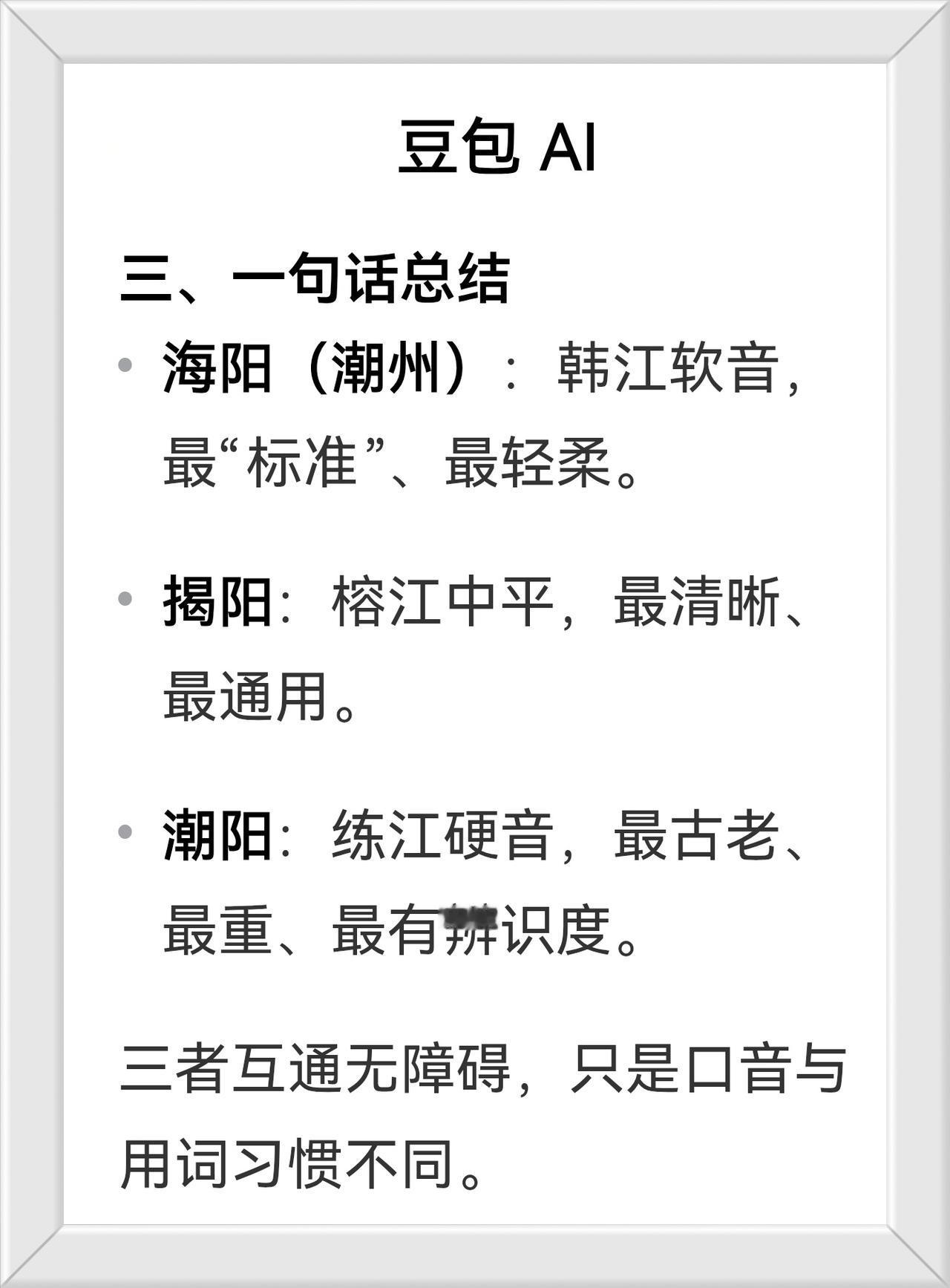 海阳人民可以介绍海阳县。 潮阳人民可以介绍潮阳县。 揭阳人民可以介绍揭阳县。 《潮州府》可以由这三个县人民一起介绍。任何一个县都无资格代表潮州府介绍《潮州府》 海阳话、揭阳话、潮阳话的区别介绍。