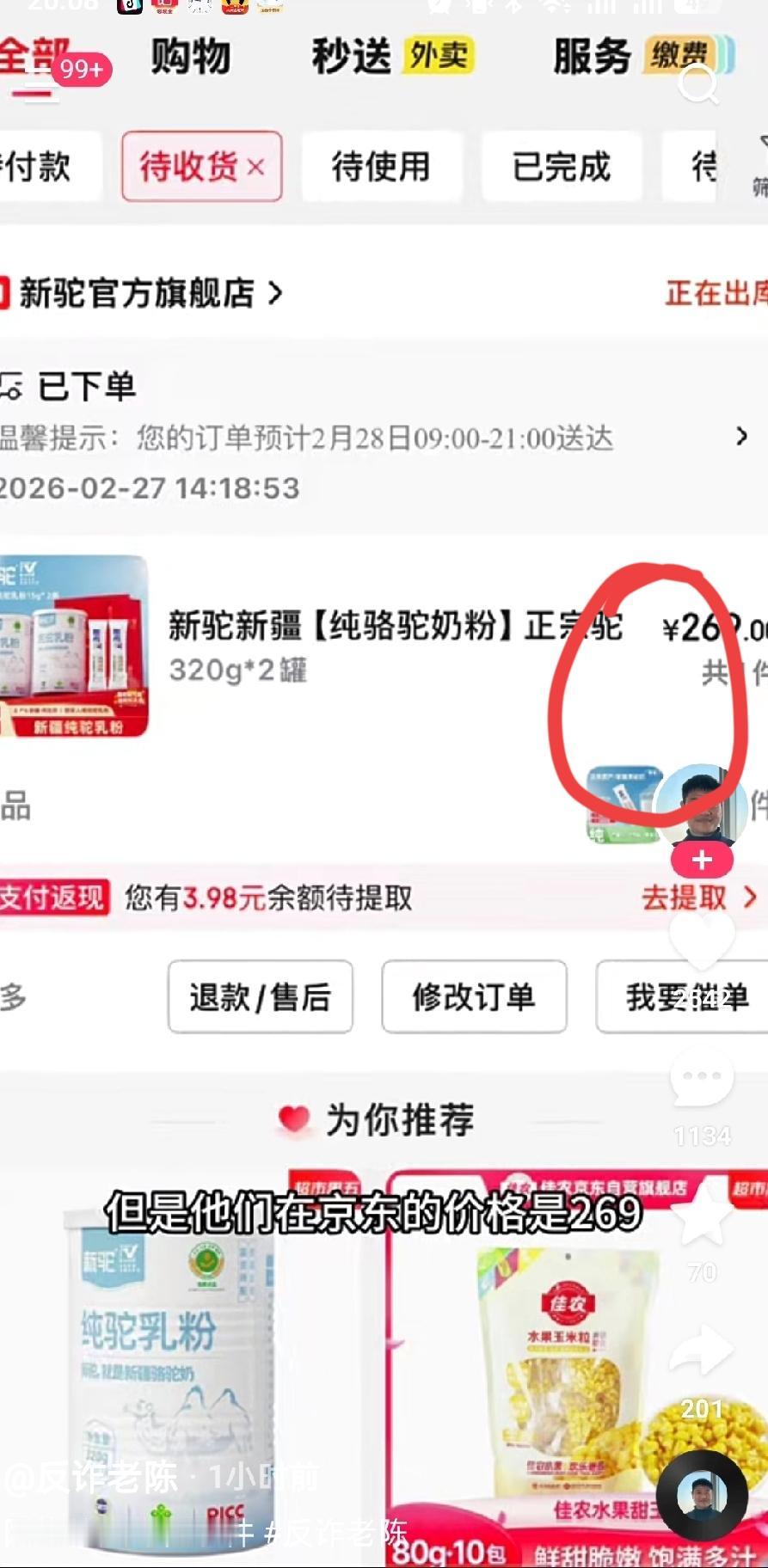 反诈老陈再出手!直指与辉同行驼奶粉大数据杀熟,老客479新客268 反诈老陈又