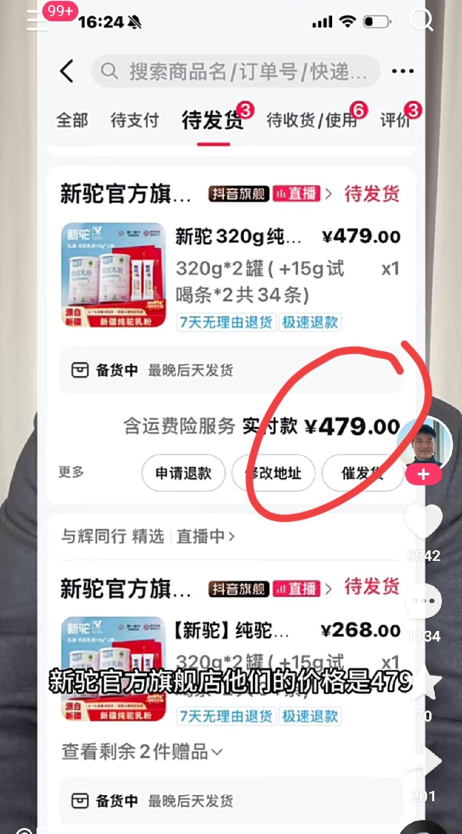 反诈老陈再出手!直指与辉同行驼奶粉大数据杀熟,老客479新客268 反诈老陈又喊话与辉同行:同样的驼奶粉,老客户购买价格是479,新客户是268,利用大数据来杀熟,你们对不起相信你们的网友! 老陈又发作品揭露“”网络特大奇怪事件”了,他说有个网友找他反映,与辉同行直播间的一款驼奶粉,老客户进入链接价格是479,而从没在直播间下过单的新客户价格是268。 该说不说,老陈心眼子挺多啊,他让网友去下单,与此同时他也去下单,然后把交易快照进行截屏,发现网友的账号购买价格是479,他的价格是268。对上了! 他去官方旗舰店看了,统一价格479;又去京东旗舰店看了,统一价格269。 这则视频发出以后,就有好事者说京东要涨价喽;更有好信儿的人去了与辉同行,发现新老客户价格统一为268元,不得不说这次反应挺快啊。 不少网友看完直接炸锅,评论区吵翻了天。有人说老陈是真敢说,专挑大主播硬刚,帮老百姓守住钱包;也有人觉得是系统bug,并非故意杀熟。 不管怎么说,经过这么一闹,直播间迅速改价,也算给老客户一个交代。大数据杀熟最伤人心,希望各大直播间都能长点心,别寒了一路支持的老粉丝。