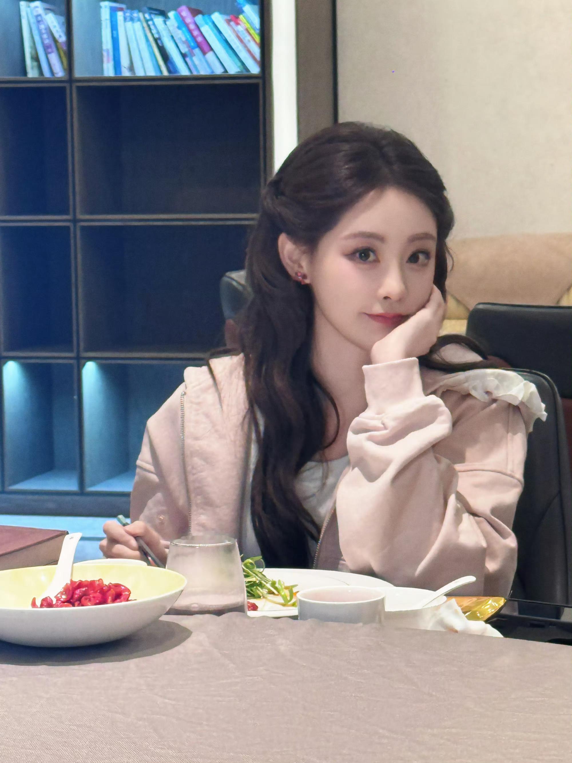 陈好吃饭的时候两腿岔开胳膊撑在腿上,这姿势真豪放