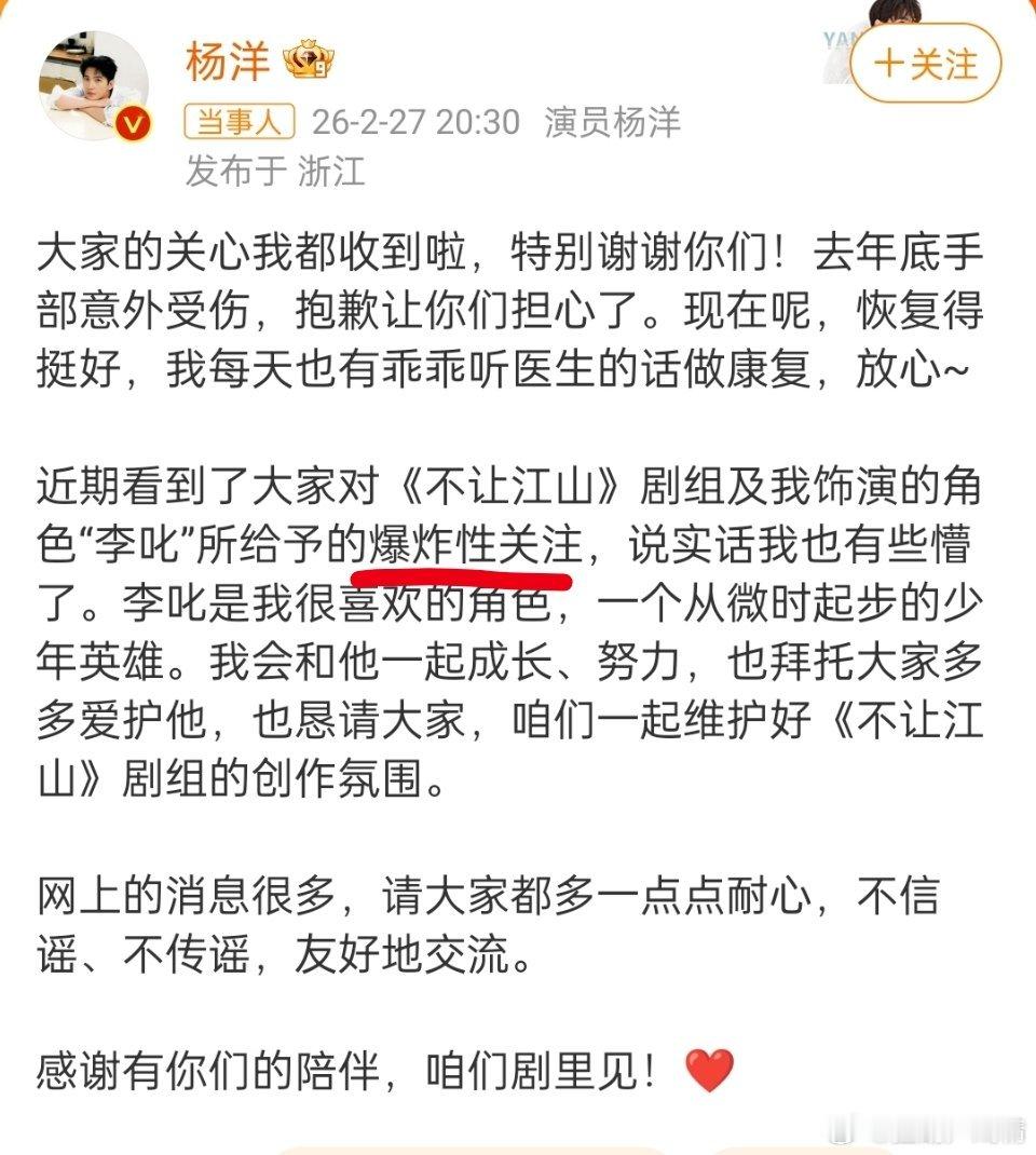 杨洋发文回应不让江山争议他可真会说话呀,只有粉丝关注维权,拿来的爆炸,好好自恋