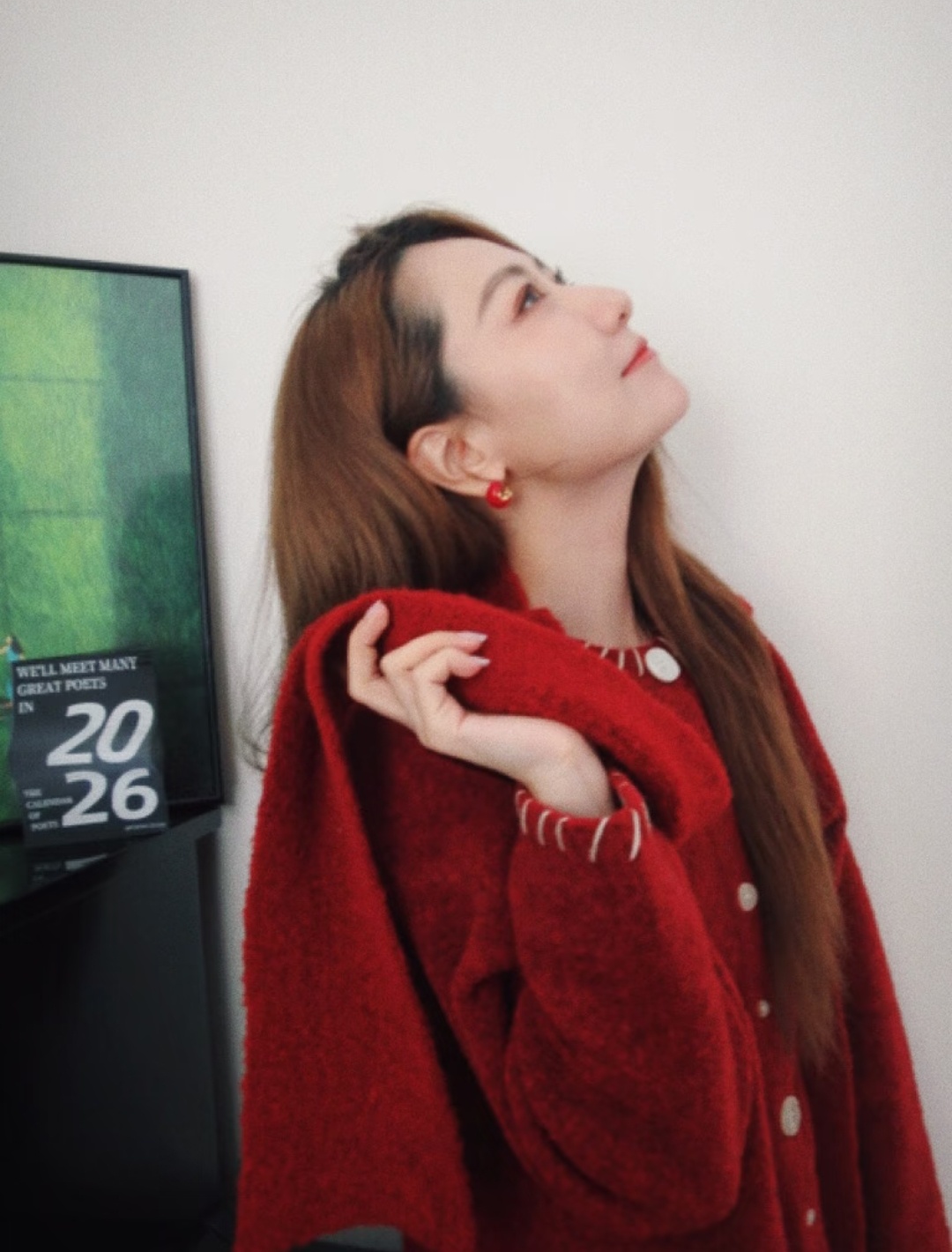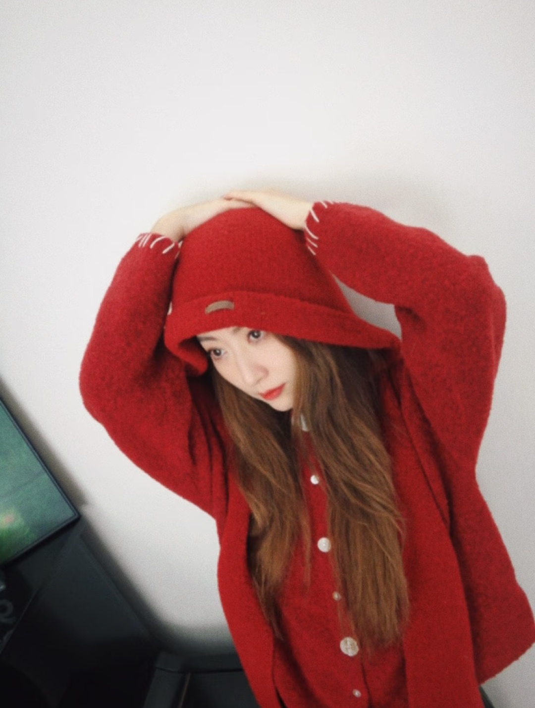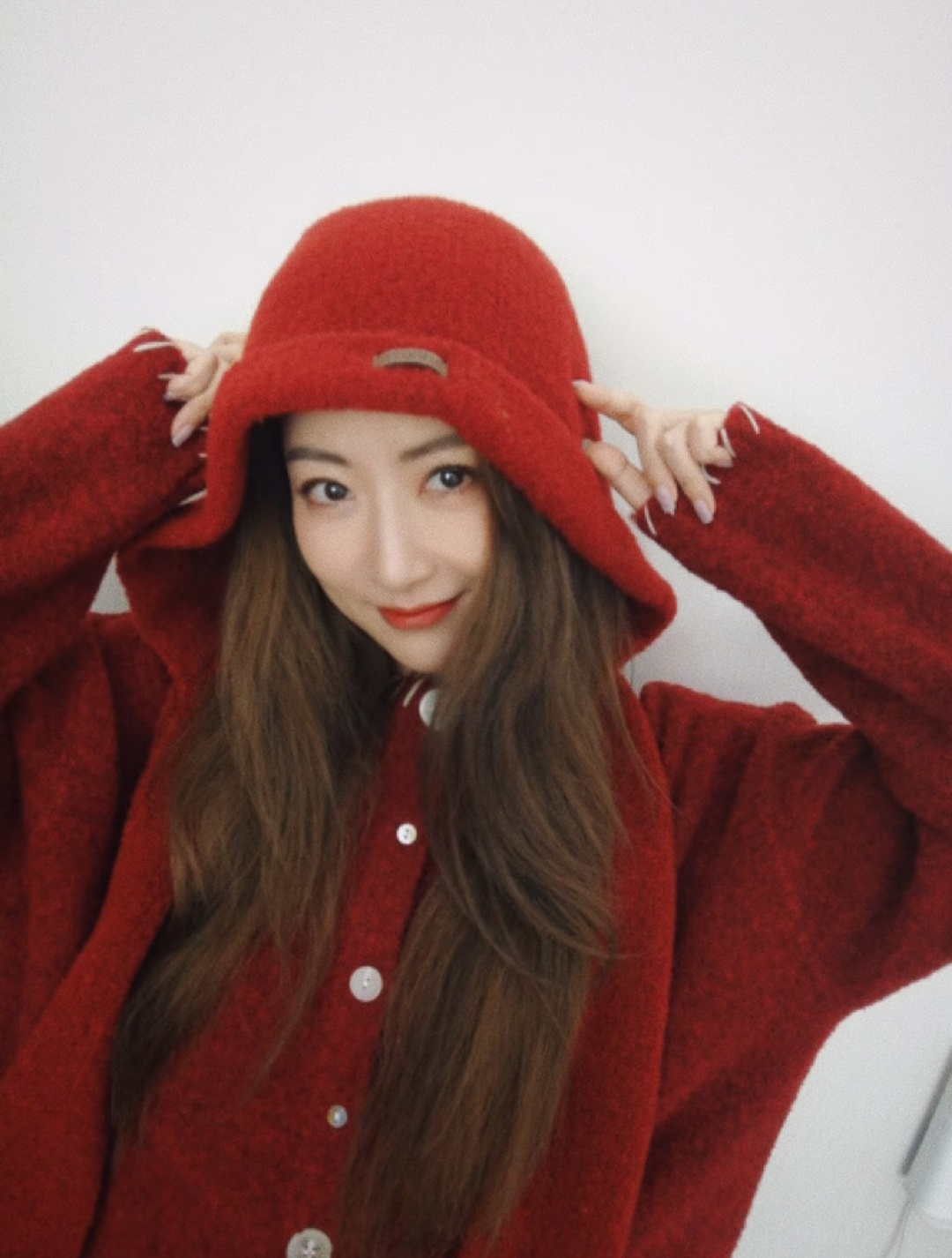 白冰新年红毛衣图片~“翻出旧相机,拍下新年的红毛衣 🧧试了试家里的旧相机没想到这么好看~大家回家了吗?吃了什么好吃的东西?”