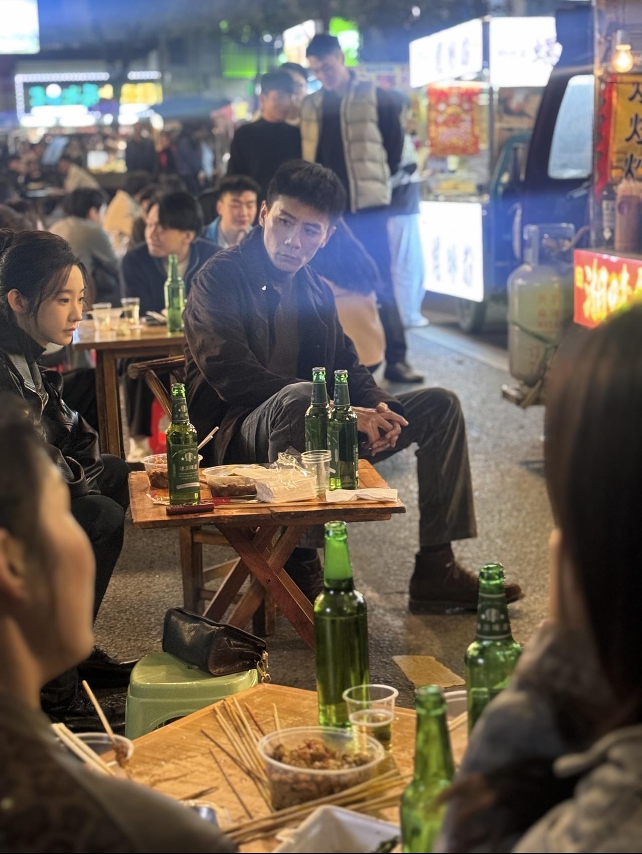 近日,有网友在岳阳偶遇刘烨拍戏,他坐在小摊旁吃宵夜的画面。 刘烨,186cm的大个头,坐在这样的小凳子上,有种伸不开腿的感觉。刘烨 岳阳