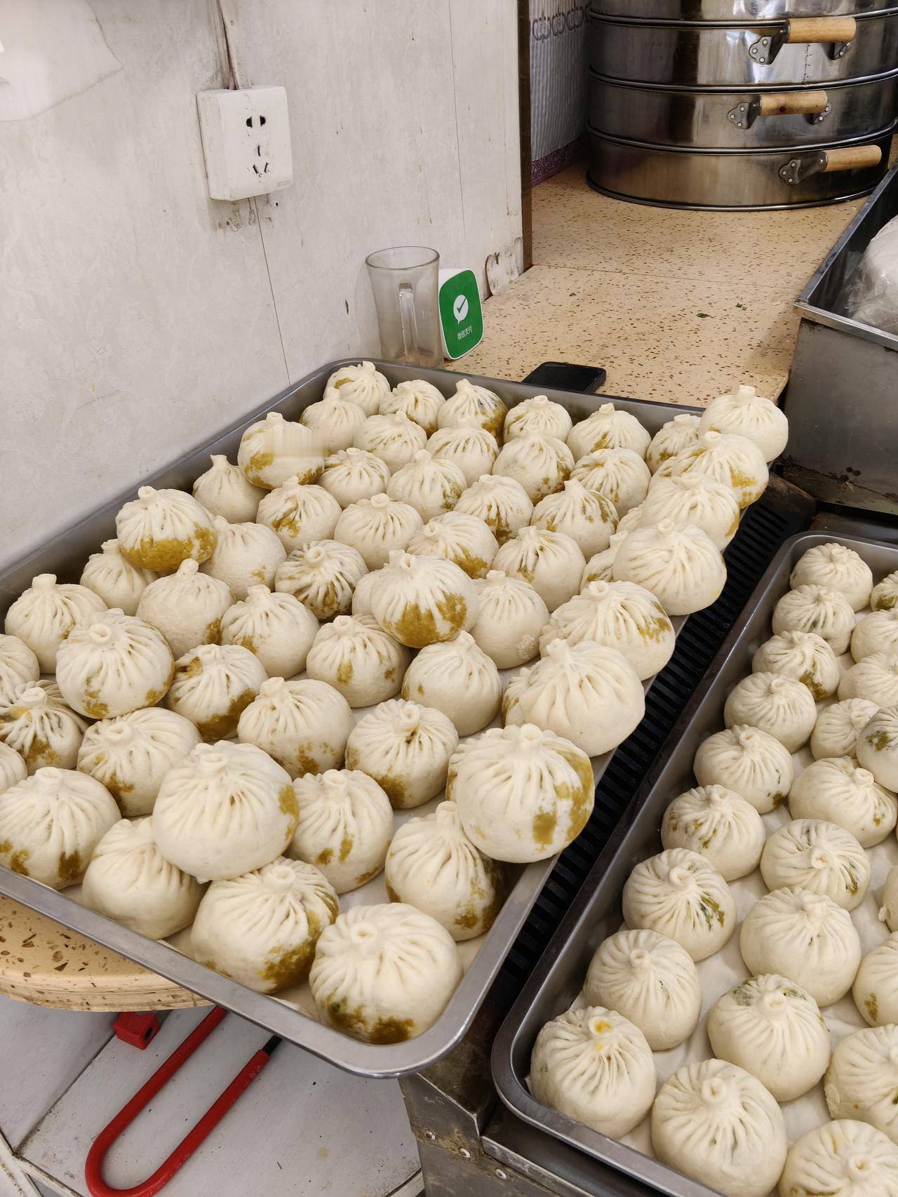 每个包子都是透着油,有韭菜包子,红萝卜包子,每一种包子各买了两个尝了一下,就是红萝卜不太好韭菜里面一个鸡蛋都没有,而且还有点儿咸。 我忘说价格了,包子一个1.2元,一个就吃一口包子不大。 这家的包子以后可能不会去吃了。