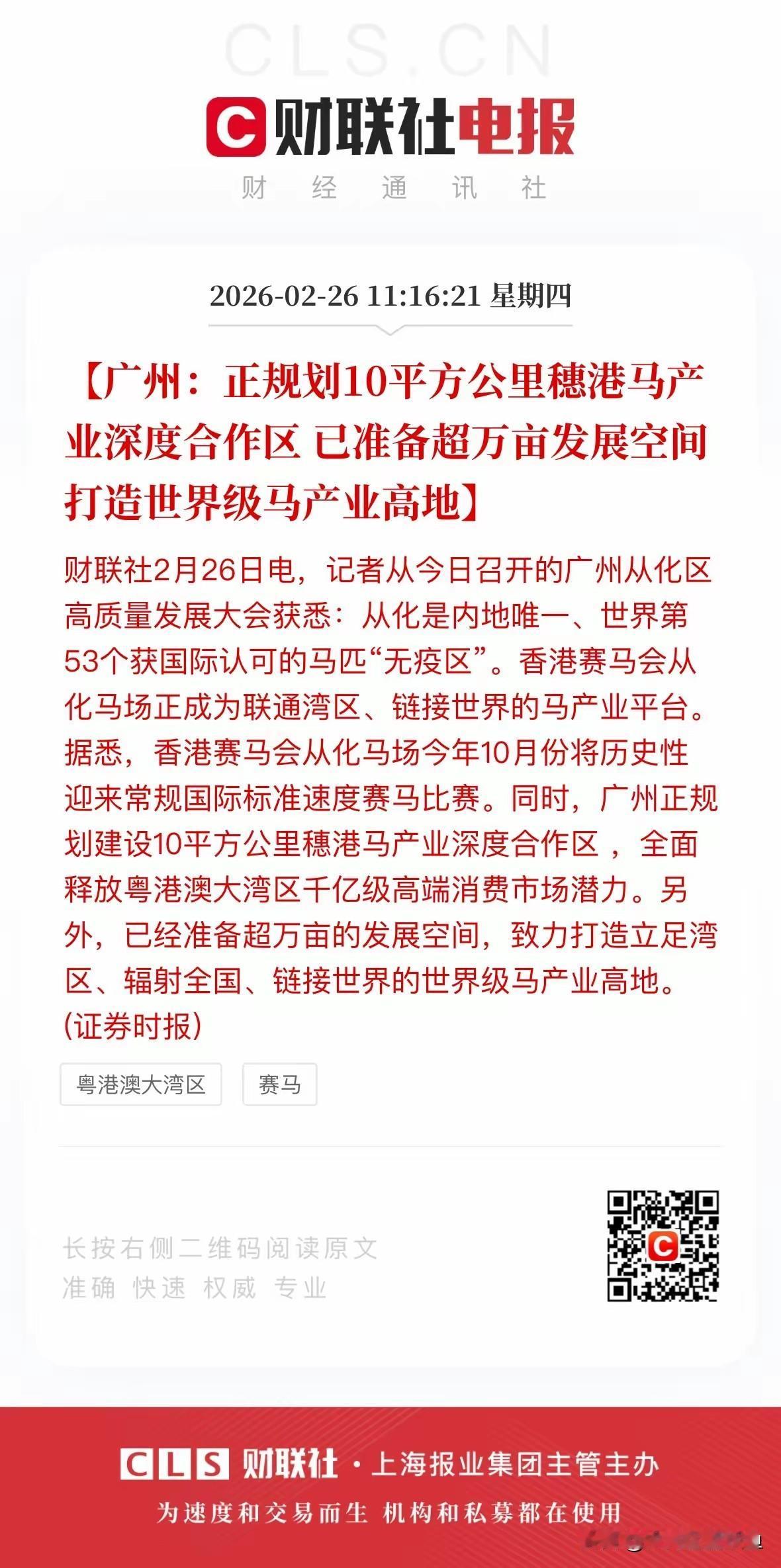 广州这次是真要在马产业上放大招了!10平方公里的产业区,超万亩发展空间,直接瞄准世界级高地——光听这规模,就知道不是小打小闹。 最让人期待的是从化马场,今年10月要办国际标准速度赛马了。这可不是随便跑跑,香港赛马会的专业度摆在那儿,到时候全球的目光都得往这儿聚。想想看,赛场上马鬃飞扬,看台上人声鼎沸,周边的酒店、餐饮、文旅不得跟着火一波? 别觉得这事儿离普通人远。马产业带起来的可不止是赛事,从饲料研发、马术培训到相关的会展、文创,整条产业链都能盘活。说不定以后家附近就能看到马术俱乐部,周末带娃体验骑术,会成新潮流。 更关键的是,穗港联手干这事,等于把香港的成熟经验直接搬过来落地。这种“湾区联动”的模式,玩好了就是下一个千亿级赛道的范本。 你们觉得,这波操作会不会让广州又多一个“城市新标签”?反正我已经开始期待赛场边的奶茶摊会不会推出“赛马限定款”了~