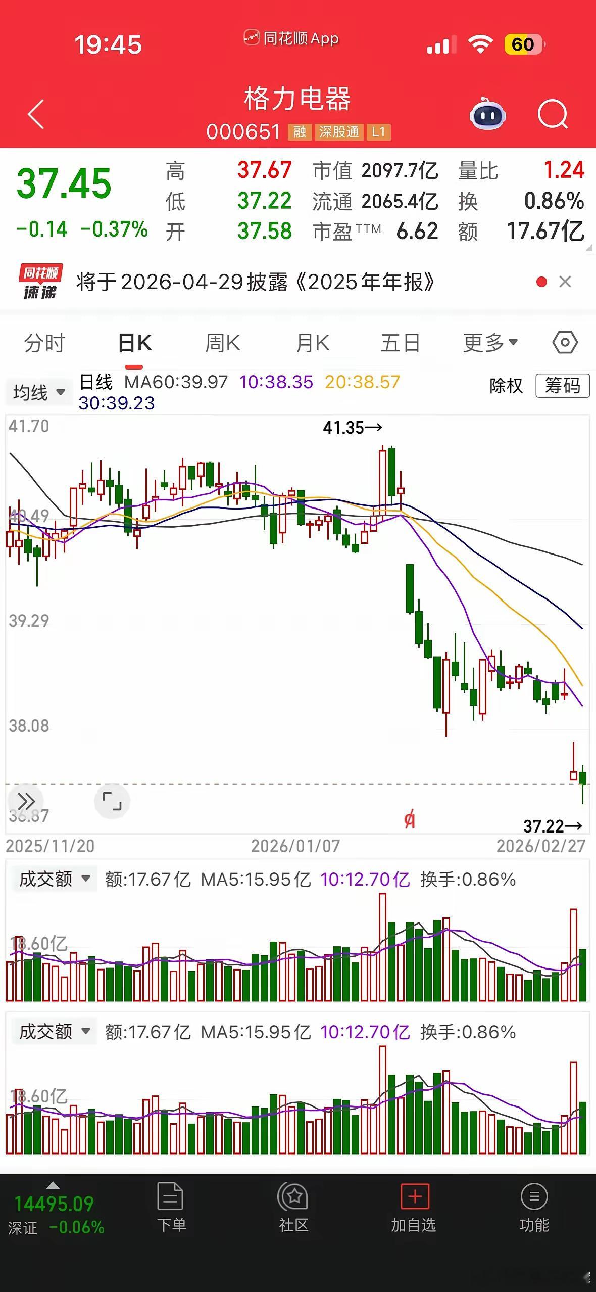 格力电器最近股价半年时间从前期的高点48块钱跌到现在37块钱,跌幅达到了20%,市盈率7倍左右,股息率都超过7%了。很多人想着它的高股息率又担心格力电器以后不行了,其实这一波下跌并没有跌多少,这中间还有一次几个点的股息分红除权,只是它在低位横盘的时间有点长了一点,让很多股民的体验有点不好了。一、格力电器这两年的营业收入为什么一直在降?1. 它70%以上的收入都是靠空调,现在房子卖不动了,空调新增需求直接少了很多。2. 它正在改渠道,砍掉老经销商直接对接门店,短期渠道变化出货少了。3. 它不打低价内卷,主动放弃了不赚钱的低端走量,订单规模自然就降了。4. 搞了手机、新能源等多元化布局都没做起来,海外市场又远落后于美的、海尔,没有新的增长来源。二、为什么营收降了,净利润却没有降,甚至还在涨?说白了就是赚的钱少了,但花的钱更少了。1. 高端高毛利的空调卖的越来越多,卖1台顶过去好几台低端机的利润。2. 广告促销这些费用砍的特别狠,不乱花钱了,省下来的就变成了净利润。3. 账上躺着1000多亿的现金,每年光利息、理财收益就有几十个亿。三、股息率这么高,业绩这么稳,为什么股价走势却那么弱?1. 市场已经不把它当成长股了,空调主业见顶又没新的增长曲线,没有增长的公司哪怕再稳,市场也只会给极低的估值。2. A股市场的风格变了,资金全往AI、半导体这些高弹性赛道里面涌,格力这种没故事、没爆发力的传统白马被资金冷落了。3. 最近当季度业绩下滑明显,市场怕它未来的利润稳不住,悲观预期提前反映在股价里了。四、高股息摆在这,市场到底在担心什么?1. 怕空调主业持续萎缩,地产长期低迷,同行又疯狂抢份额,利润一旦下滑,高分红就没了根基。2. 怕渠道改革失败,线上被美的、小米越甩越远,线下渠道动荡,基本盘保不住。3. 怕接班问题,董明珠之后公司的战略、高分红政策会不会变,不确定性太大。格力现在的优点和缺点都特别明显:优点:空调龙头地位还在,账上有钱,现金流稳,短期分红能力没有问题。缺点:增长天花板已经到了,未来的不确定性太大。
