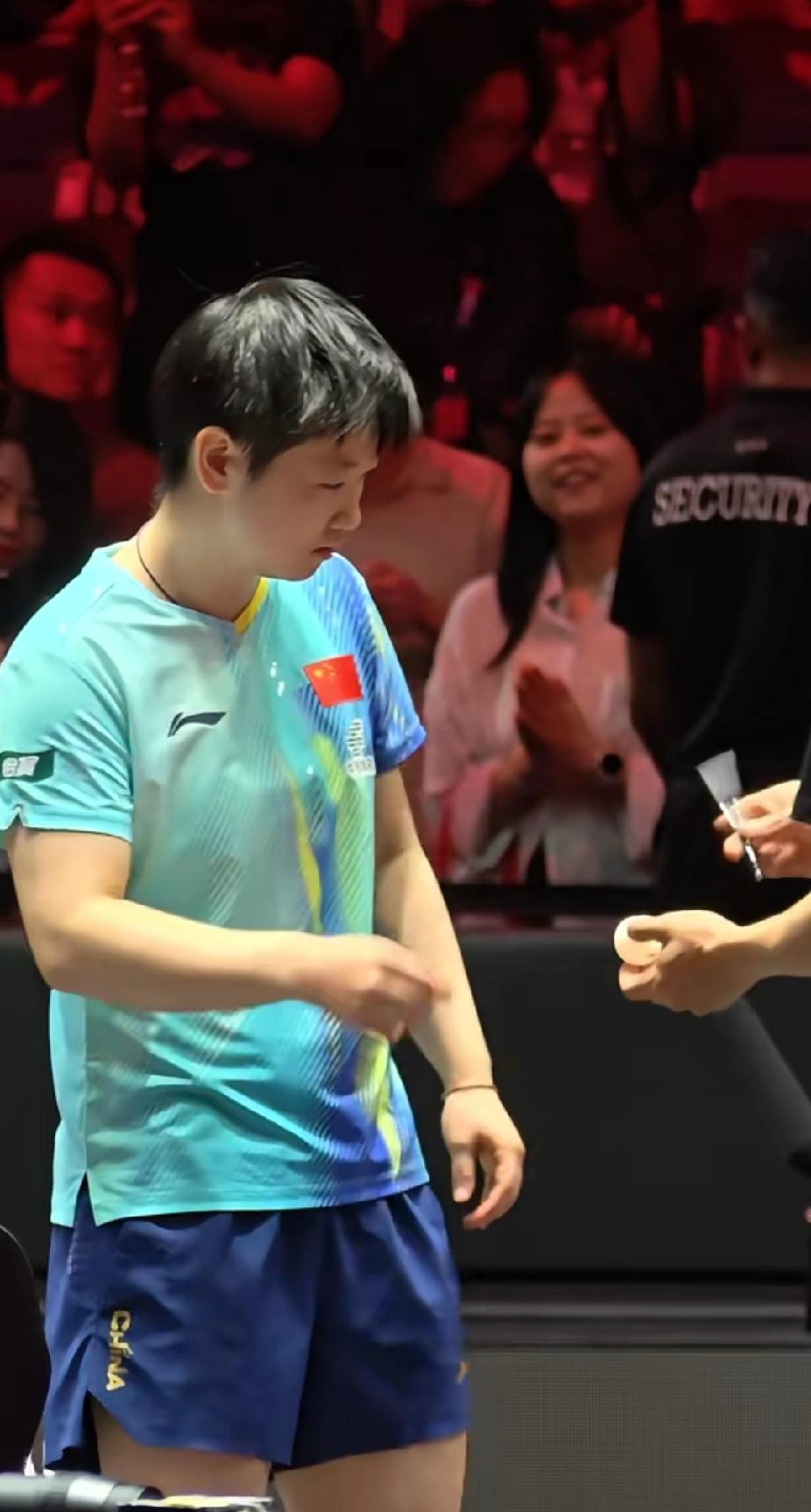 莎莎赛后暖心瞬间✨ 这颗幸运球,是她给球迷的专属惊喜 WTT新加坡大满贯赛后,孙颖莎刚结束采访转身要走,工作人员递来两颗乒乓球,她便停下脚步,认真签下名字后交还给对方。 本以为故事到此为止,没想到工作人员再次将球递到她手中。莎莎没有丝毫犹豫,走到场边,将这颗带着温度的幸运球高高抛向沸腾的观众席。 全场瞬间被这份真诚点燃——没有刻意的奔跑,只有自然的温柔,这样的莎莎,谁能不心动啊!❤️ 孙颖莎 新加坡大满贯
