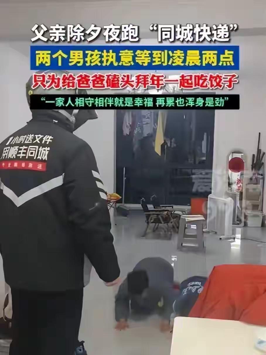 安徽马鞍山除夕夜震撼一幕:父亲寒风中跑外卖至凌晨归家,推门竟见两儿双双跪地磕头泣不成声! 当整座城市沉浸在春晚的欢声笑语和烟花的绚烂光芒中,安徽马鞍山的老张却默默戴上了头盔。他不是不爱团圆,而是深知肩上沉甸甸的重量——两个儿子的学费、父母的药费、柴米油盐的琐碎,都在呼唤他再多拼一把。除夕夜的外卖单价高,每一单都是孩子的新衣裳,是饭桌上多一道菜的可能。 寒风如刀,划过他冻得通红的脸颊。街道从喧闹归于寂静,店铺陆续打烊,连烟花都渐渐歇了。只有他的电动车还在夜色中穿行,手机提示音成了最动听的旋律。从傍晚到凌晨两点,腿麻了,手僵了,他却越跑越有劲,因为每多一单,家的未来就多一分光亮。 终于收工回家,他蹑手蹑脚推开门,生怕吵醒熟睡的家人。可眼前的景象让他瞬间愣住——客厅灯火通明,妻子红着眼眶坐在沙发上,两个儿子竟也醒着。不等他放下外卖箱,两个孩子忽然扑通跪地,重重磕了一个头:“爸爸,您辛苦了!我们给您拜年!”那一刻,这个在风里雨里都没低过头的汉子,眼泪夺眶而出。 原来妻子一直没睡,她告诉孩子:“爸爸不是不想陪我们,他是用他的辛苦换我们的安稳。”这一夜,她没抱怨,没诉苦,而是把丈夫的奔波化作最生动的感恩课。于是两个少年执意守到深夜,用最传统也最真挚的一跪,告诉父亲:你的付出,我们都懂。 多少父亲就像老张一样,默默扛起一个家,他们的爱从不挂在嘴边,而是藏在每一次早出晚归里。他们习惯了被当作“钢铁超人”,仿佛不会累、不需要安慰。可这一跪,跪碎了多少沉默的辛酸?它让我们看见,父亲要的从来不是歌颂,只是一份“被看见”的懂得。 反观当下,多少家庭把父亲的付出视为理所当然?孩子抱怨陪伴太少,妻子埋怨收入不高,却鲜少有人问一句:“你累不累?”老张的妻子却用智慧点亮了这个家——她教会孩子的不是索取,是体谅;不是计较,是感恩。这才是家风最珍贵的传承。 这一跪,跪出了中国式父子关系中最动人的一幕:父爱如山,沉默却厚重;子心如镜,清澈且温暖。它照见了普通人的坚韧与深情,也戳中了无数人心中最柔软的地方——我们拼搏一生,所求的不过是付出能被珍惜,辛苦能被理解。 烟花会散,春晚终场,但这份深植于烟火气的温情却久久不散。它让我们相信:无论生活多难,只要一家人心贴着心,彼此疼惜,便是人间最暖的团圆。愿每一个为家奔跑的父亲,都能在深夜归家时,看见一盏为他亮着的灯。 (来源:根据网络热议事件及多家自媒体报道综合撰写) 家庭温暖 父爱如山