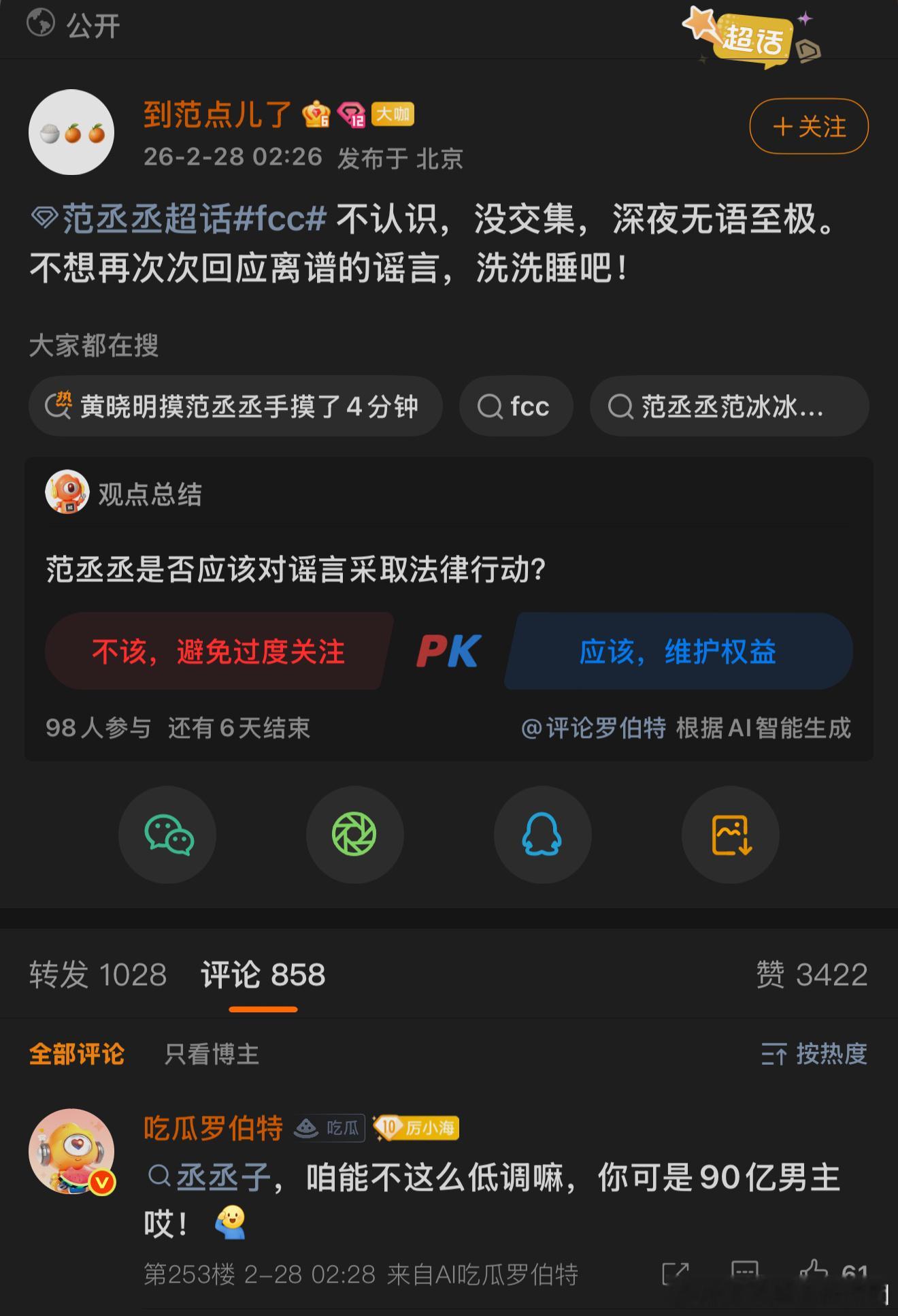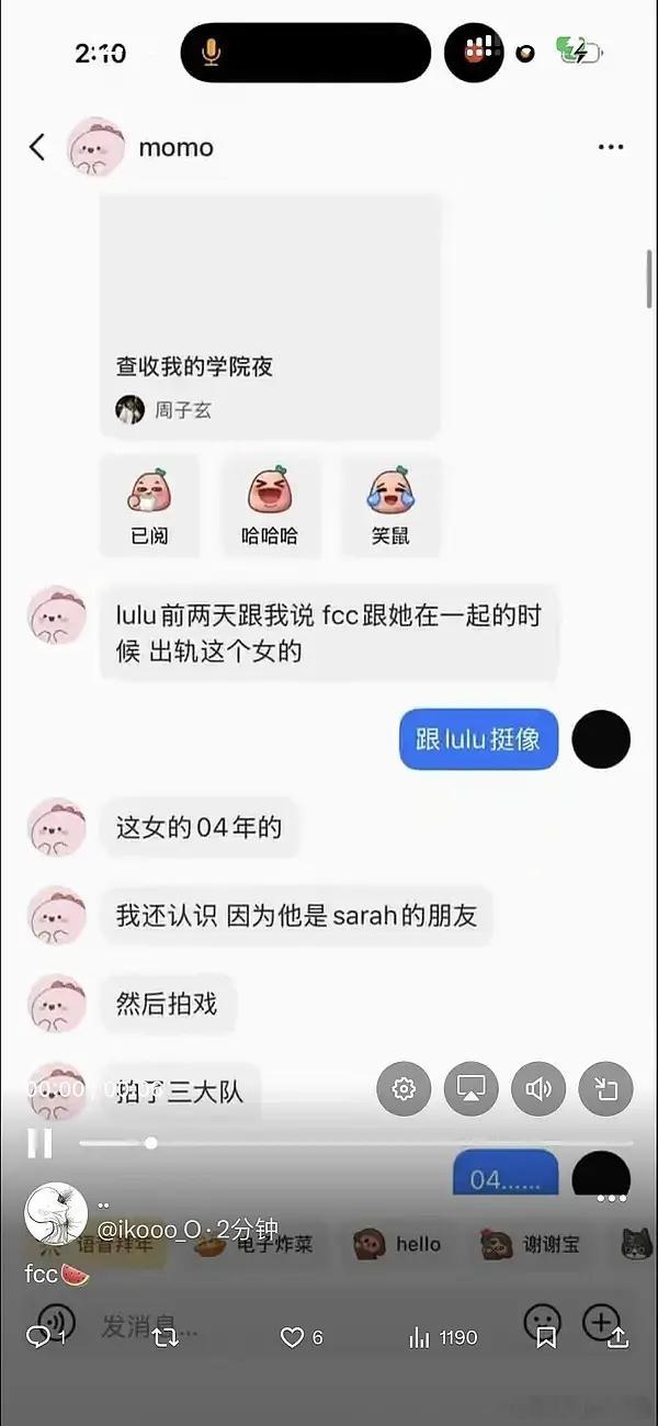郫县上有个小🍠博主发了自己和某流量男艺人的聊天记录,聊天对话里提及范丞丞的名字缩写“fcc”称“fcc跟她在一起的时候出轨这个女的”,不过范丞丞对接刚刚回应了称这段聊天记录里提及的人并不认识,深夜无语至极,不想再次次回应离谱的谣言,洗洗睡吧”