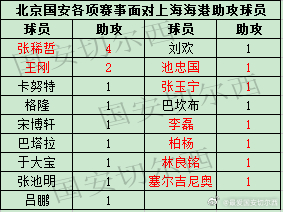 【国安各项赛事同上海海港历史交锋战绩及进球助攻】