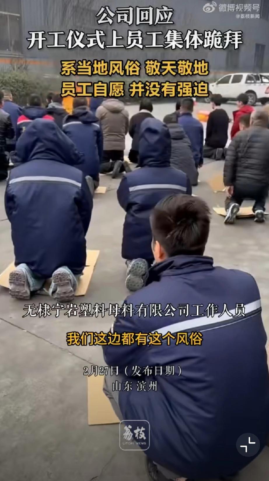 山东一工厂开工员工集体跪拜。山东这边本来就特别看重年俗、礼数、祈福这些,开工拜一拜,图个平安顺利,在当地很多人眼里就是很正常的传统。 只要是员工自愿、不强迫、不委屈,人家厂里自己的仪式,真没必要拿我们的眼光去批判。 哪怕不认同这种形式,还是得尊重人家地方风俗。 山东习俗拜大年 磕头大礼 传统跪拜之礼