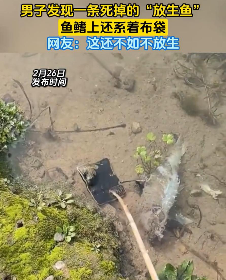 “这哪是放生啊!”男子在岸边散步,突然看到河边有一个黑色的袋子,开始还以为是谁的东西掉了,走近一看袋子绑在一条鱼上,而鱼已经死掉了,男子反应过来,这是被放生的鱼,可如此放生方式这的合适吗? 当时,男子远远看见岸边上扔着个黑乎乎的塑料袋。他寻思着,谁这么不小心,东西掉了都不知道。等走过去定睛一瞧,当场就愣住了 那袋子哪是掉的啊,是被人拿绳子牢牢绑在一条鱼身上的,而那条鱼早就翻白肚了,硬邦邦地浮在水边,不知道死了多少天 男子拿木棍戳了戳,鱼鳍上还系着布条,袋子也还结实。他看着这场景,半天不知道说啥好 说实话,这一幕看得人心里挺不是滋味的。你说你好歹是放生,图的是个善缘,结果倒好,鱼没活成,还给河添了笔垃圾账。这不是造孽吗? 现在有些人搞放生,也不知道是真信这个,还是图个心里安慰。反正就是买条鱼、念几句、往水里一扔,完事儿了。至于鱼能不能活、适不适合这片水、会不会污染环境,统统不在考虑范围内 这就好比说,你想做好事,结果把人绑进了医院,那这好事还叫好事吗 更离谱的是,这种系着袋子放生的方式,也不知道是哪个高人想出来的。可能是怕鱼跑了,觉得绑紧了才算是真正放生了?可问题是,鱼连动都动不了,这哪是放生 咱也不是说非得把这事儿上纲上线。但有些事吧,出发点再好,方式错了,也不行