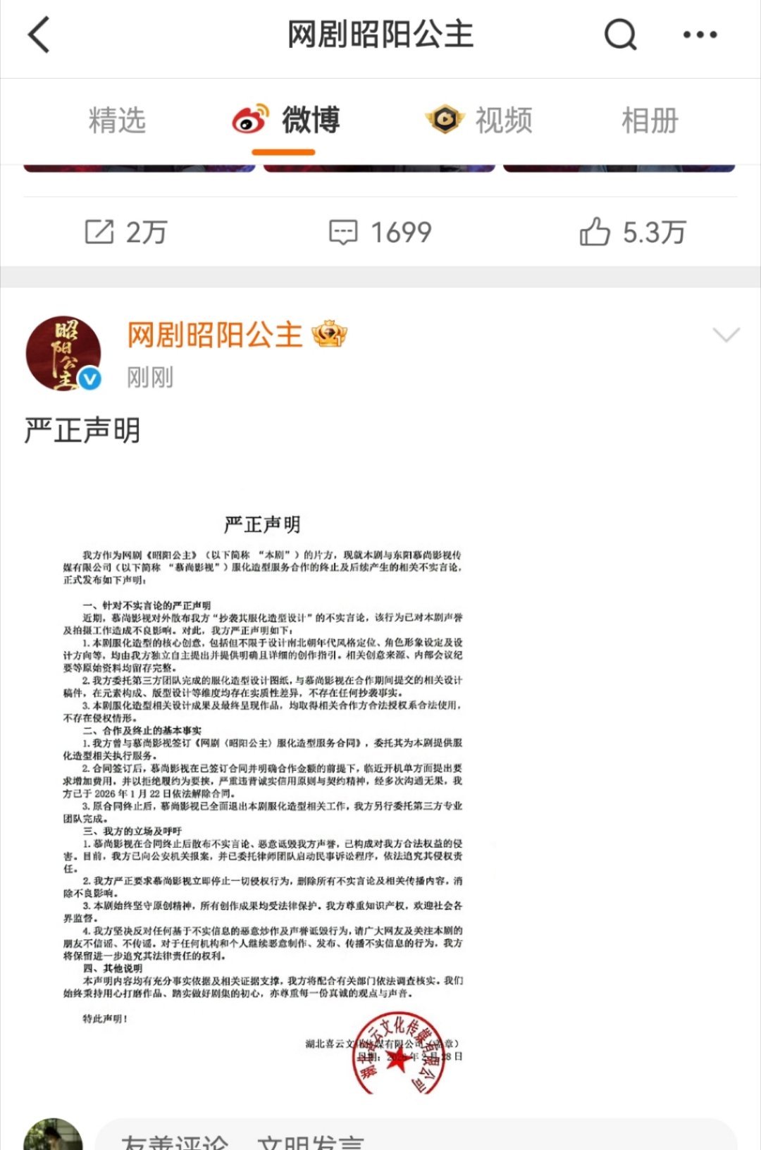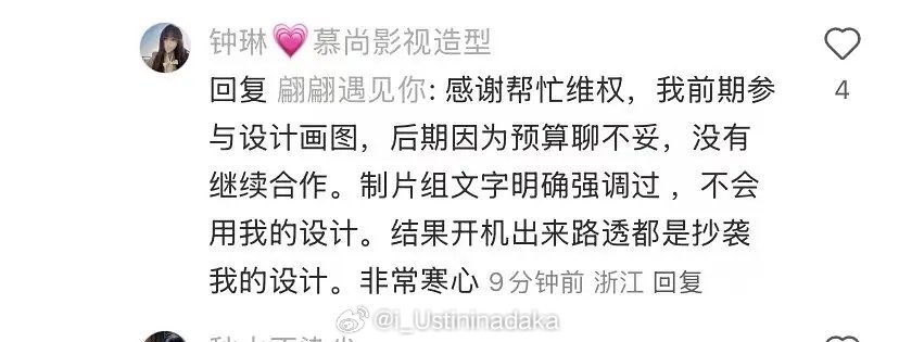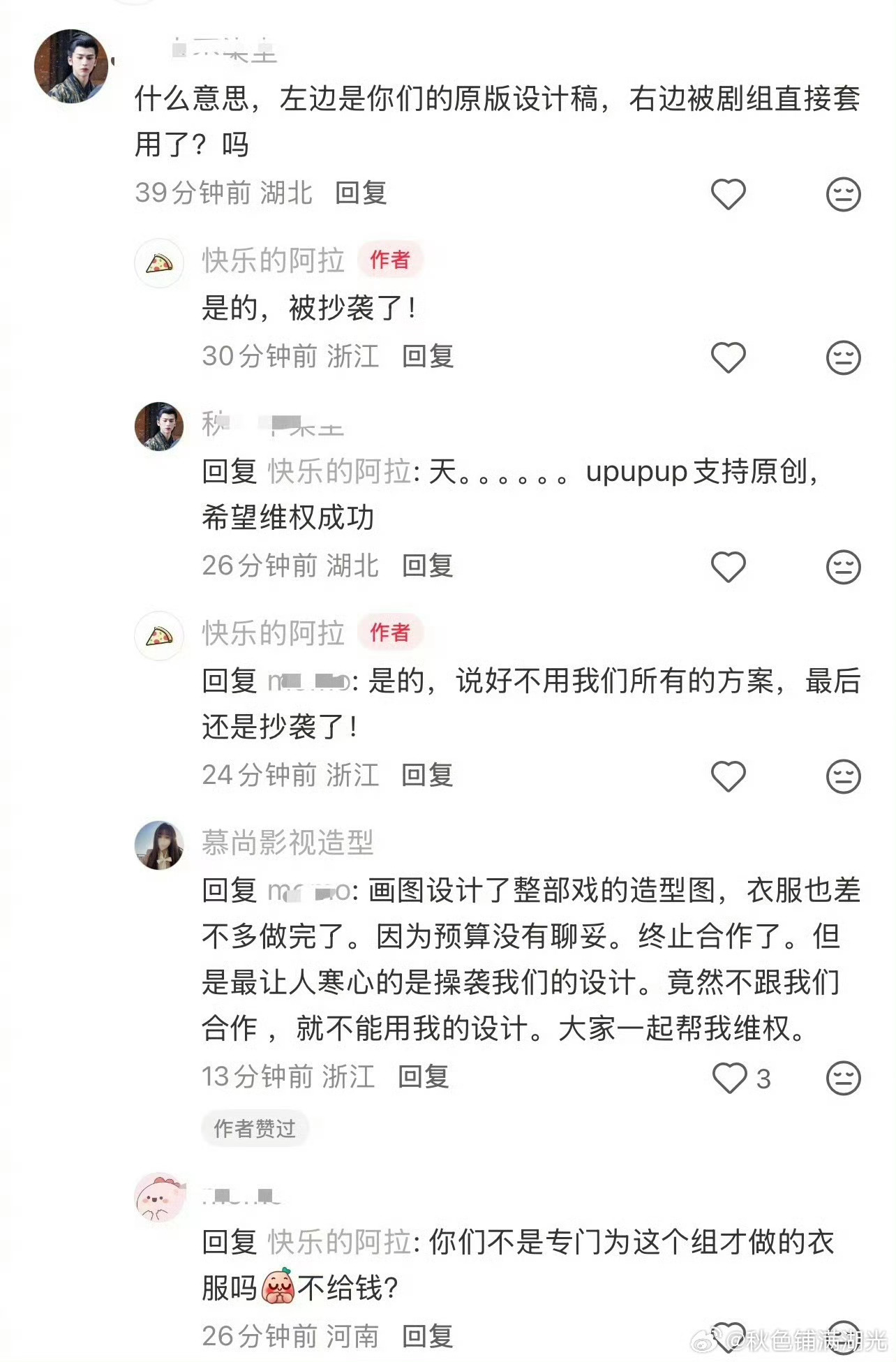 昭阳公主剧组这份声明完全是睁眼说瞎话啊。找人家设计人物造型,人家付出时间精力后又终止合作,终止合作没问题,但是后面又直接用了人家设计的造型却没有付出任何劳务报酬,现在居然有脸说设计图和实际造型不同不存在抄袭??这都直接照搬人家设计了啊