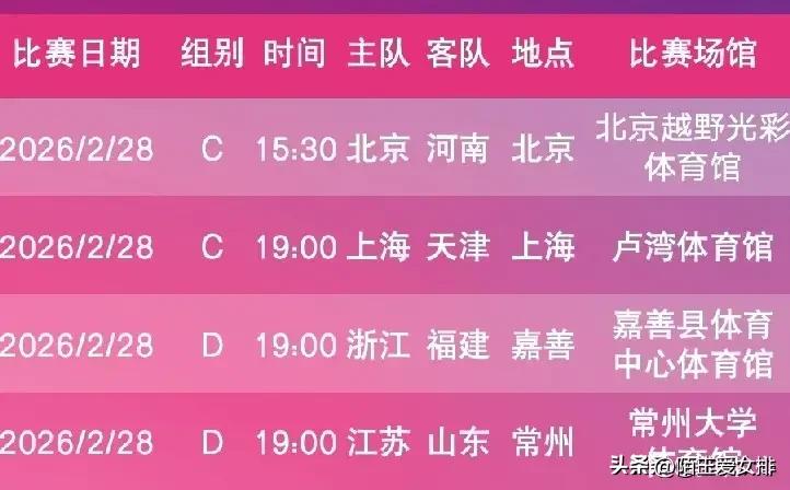 排超联赛季后赛开赛第二轮! 今天有四场比赛,分别是: 北京女排主场迎战河南女排 上海女排主场迎战天津女排 浙江女排主场迎战福建女排 江苏女排主场迎战山东女排 看看排协发文就知道了,今天的焦点战是: 上海女排和天津女排的比赛 上一场比赛天津女排输给了北京女排 如果这场比赛再输了,今年天津女排就危险了 就可能会四强不入,晋级不了决赛 但是这种可能性现在看来是很大的 毕竟上海女排实力强大,是夺冠大热门! 但是希望天津女排也不要放弃 打好每一场比赛,打好每一个球! 期待今晚七点她们两队的比赛! 加油!加油!加油!