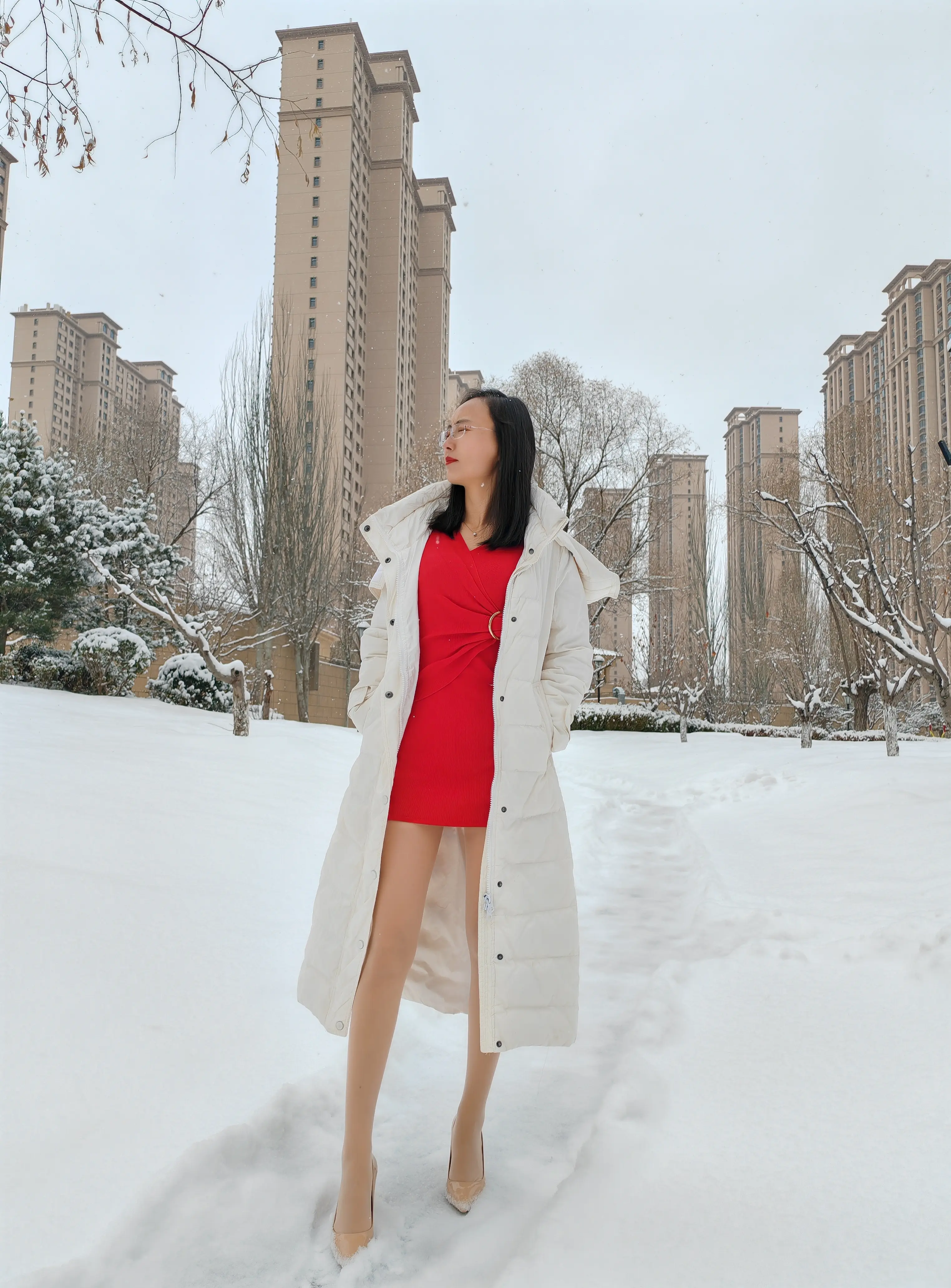 美女日常冬日美女穿搭大长腿美女