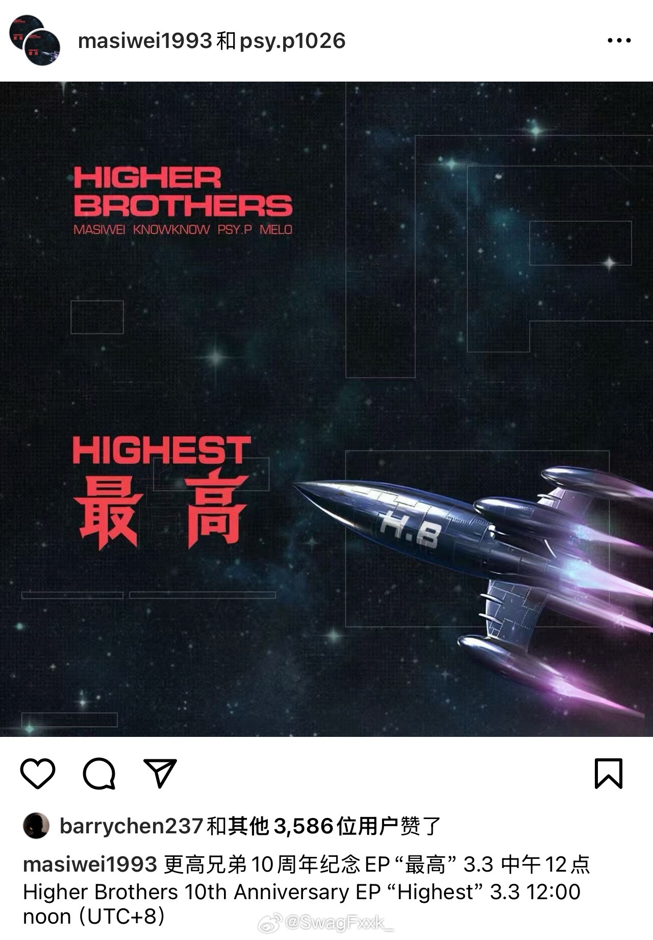 团专真要来了!HigherBrothers官宣10周年纪念EP《最高》3月3号发布!!!!