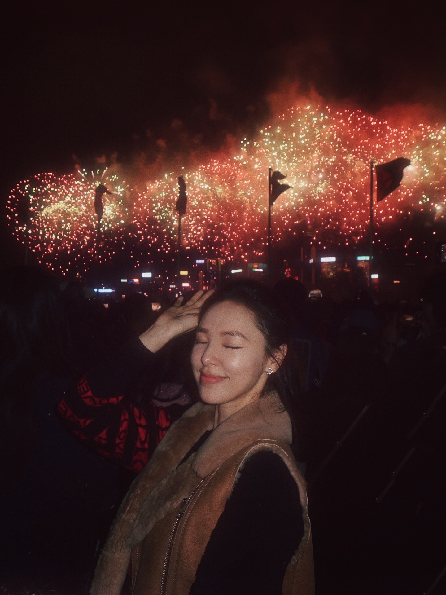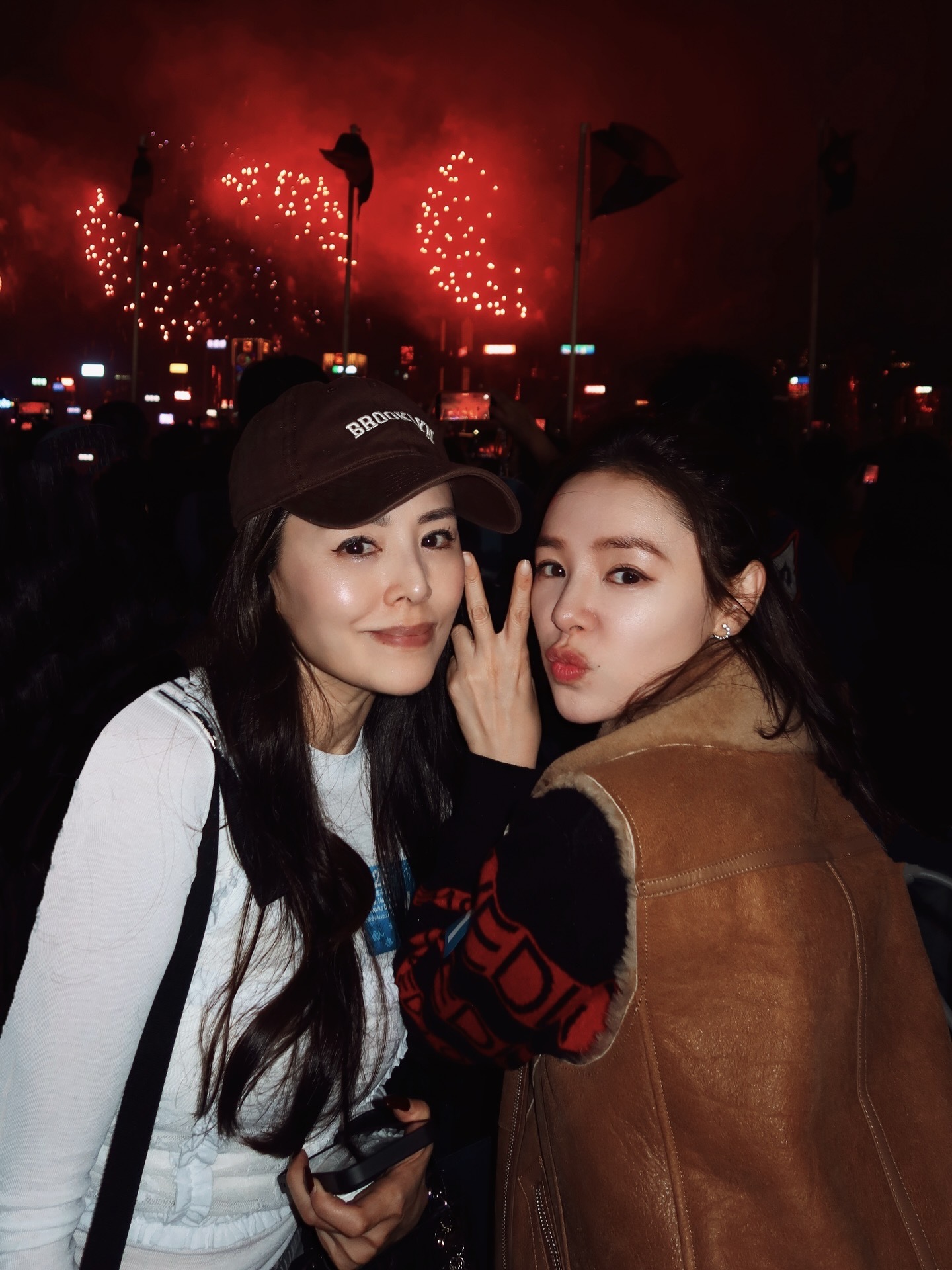 谭凯琪罕晒与姐姐谭凯欣合照 两姐妹看烟花