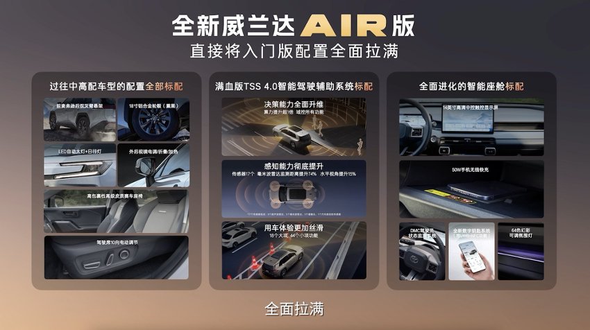 2月24日,广汽丰田威兰达AIR版正式上市,权益价13.78万起。