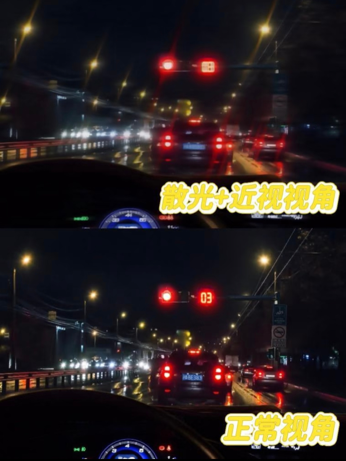 近视散光人群开夜车的视角不要侧躺玩手机,补充一些叶黄素,要不散光之后的世界就是这样了,开车骑车都很不方便