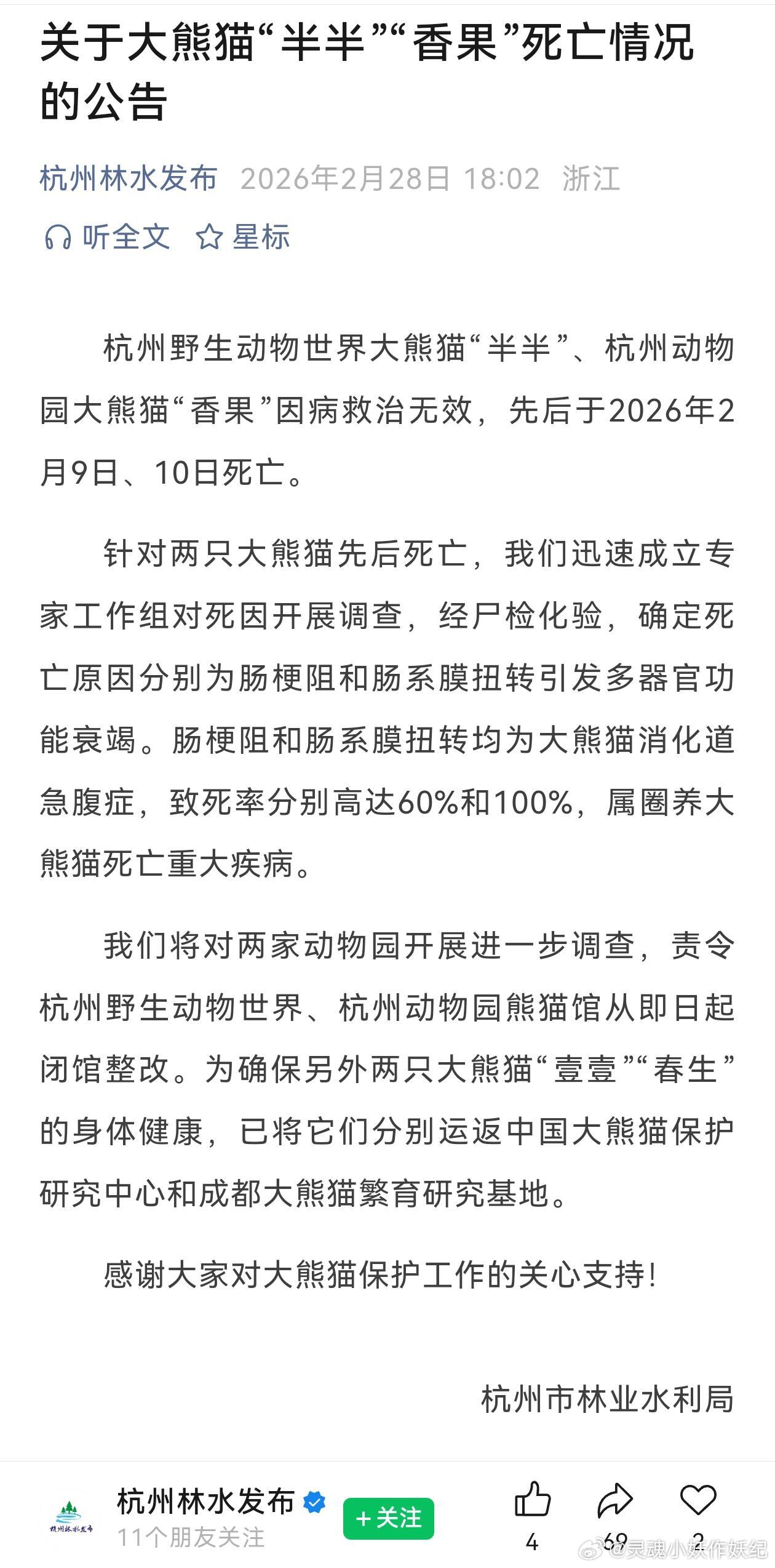 大熊猫半半香果离世杭动!你拿什么赔我们那么可爱的香果半半!