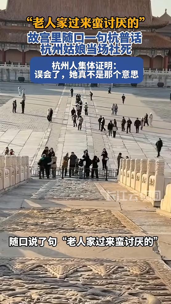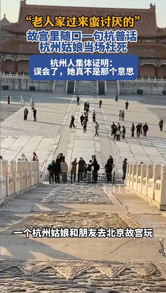 “解释不清了!”近日,北京,一杭州女子和朋友去故宫游玩,看到有老人在台阶旁边走累休息,便说了句“老年人过来蛮讨厌的”,没想到这话被旁边的老人听到,转过头震惊地看着女子,女子也立马意识到自己的这句方言闹了误会!网友:这下尴尬了! 两个杭州姑娘在网上讲述了她们一次社死的经历,讲的是她们去故宫游玩时,因为一句杭州话,闹出来的一场大误会,看完真的又尴尬又好笑。 她们俩游玩故宫的时候,一层又一层的台阶,让她们两个逛了不到一个半小时就累得不行,小腿又酸又胀,只能找个台阶边的阴凉处歇脚,连拍照的力气都没了。 歇脚的时候,她们发现身边有不少老年游客,大多是跟着旅行团来的,年纪都不小了,头发花白,有的手里还拎着水杯和小背包,爬台阶的时候,得扶着旁边的栏杆,一步一步慢慢挪,看着就格外费劲。 其中一个姑娘心思比较细,看着老人们吃力的样子,心里就有点心疼,下意识就跟身边的闺蜜念叨了一句“老人家过来蛮讨厌的”。 这话在她们杭州本地,“讨厌”就是很辛苦的意思,老人家来这儿爬这么多台阶,太费劲、太不容易了。 旁边不远处,有一位大爷看着得有七十多岁,听到这句话,猛地转过头,眼神里满是震惊,还有点难以置信,就那么直勾勾地盯着两个姑娘。 两个姑娘被大爷看得浑身不自在,愣了一两秒,才突然反应过来,坏了,这句话肯定被大爷误会了。 瞬间,两个人的脸就红透了,站在原地手足无措,想跟大爷解释,可越着急,脑子越乱,话到嘴边就卡住了,连一句完整的解释都说不出来。 周围还有几个游客,也被这边的动静吸引,纷纷看了过来,那种尴尬的感觉,真的比当众出丑还难受,两个人恨不得找个地缝钻进去。 这场误会,真的不能怪任何人,全都是方言闹的乌龙。 咱们平时说的普通话里,“讨厌”就是妥妥的贬义词,不管是谁听了,都会觉得是不喜欢的意思,大爷会震惊,也完全能理解。 但杭州人平时说“讨厌”,要么是形容事情费劲、让人犯愁,要么就是表示给别人添了麻烦。 就像平时请邻居或者朋友帮忙,杭州人都会客气地说一句“给你带讨厌了”,其实就是“给你添麻烦了”的意思,是一种很礼貌的表达。 那天姑娘们说的,其实是杭普话,杭州话和普通话混在一起说,误会也就这么来了。 等大爷慢慢转过头,继续歇脚,两个姑娘才缓过劲来,越想越尴尬,回去之后,就把这件事整理成了帖子,发到了网上。 一方面是想吐槽自己的社死瞬间,另一方面也想提醒大家,出门在外说方言,真的要多留意。 没想到帖子一发出去,就引来了好多人的关注,尤其是杭州网友,看到后都赶紧过来“救场”,在评论区里耐心解释,说杭州话里的“讨厌”真的不是骂人,还分享了自己说方言闹出来的笑话。 还有不少其他地方的网友,也在评论区分享自己的经历,有人说自己老家的方言,把“鞋子”说成“孩子”,跟外地朋友聊天,总被误会。 还有人说,自己说方言习惯了,说普通话时总带方言词,经常被人追问到底说的啥。 原本尴尬的一件事,慢慢就变成了一场全网的方言吐槽大会,还有人调侃,杭州话的“加密等级”也太高了,外地人根本破译不了。 不过也多亏了这场误会,让更多人知道了杭州话里“讨厌”的特殊含义,也感受到了方言的独特魅力。 一句误会成笑料,也让更多人了解了方言的可爱,这大概就是这场尴尬经历里,最暖心的小收获了。