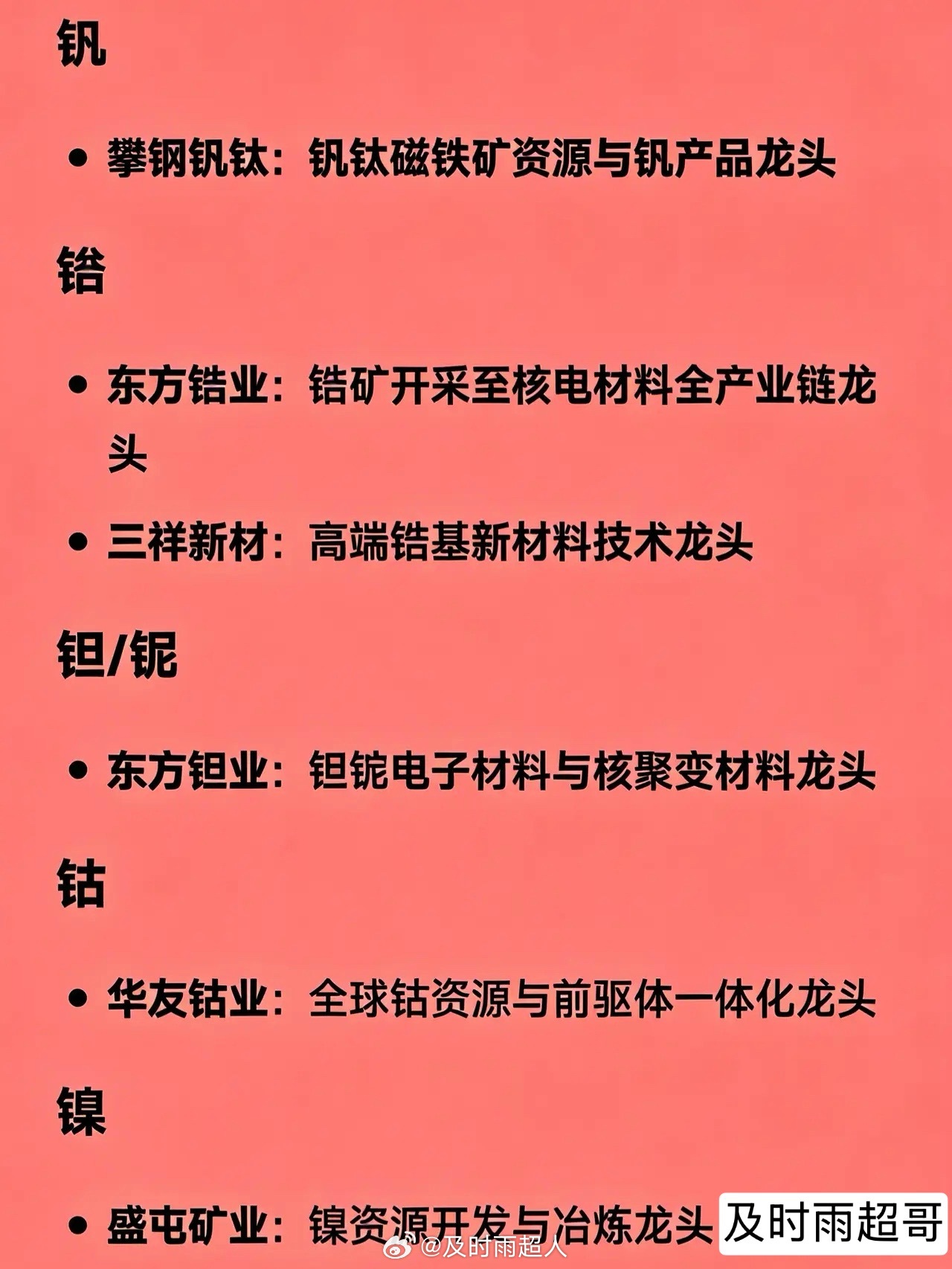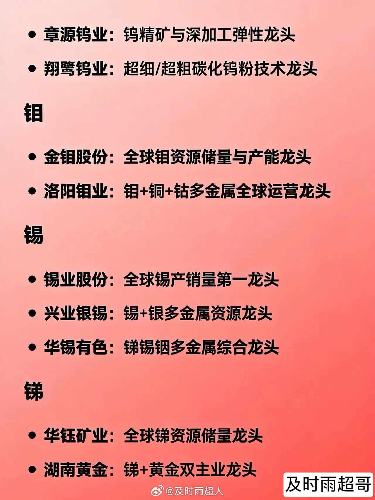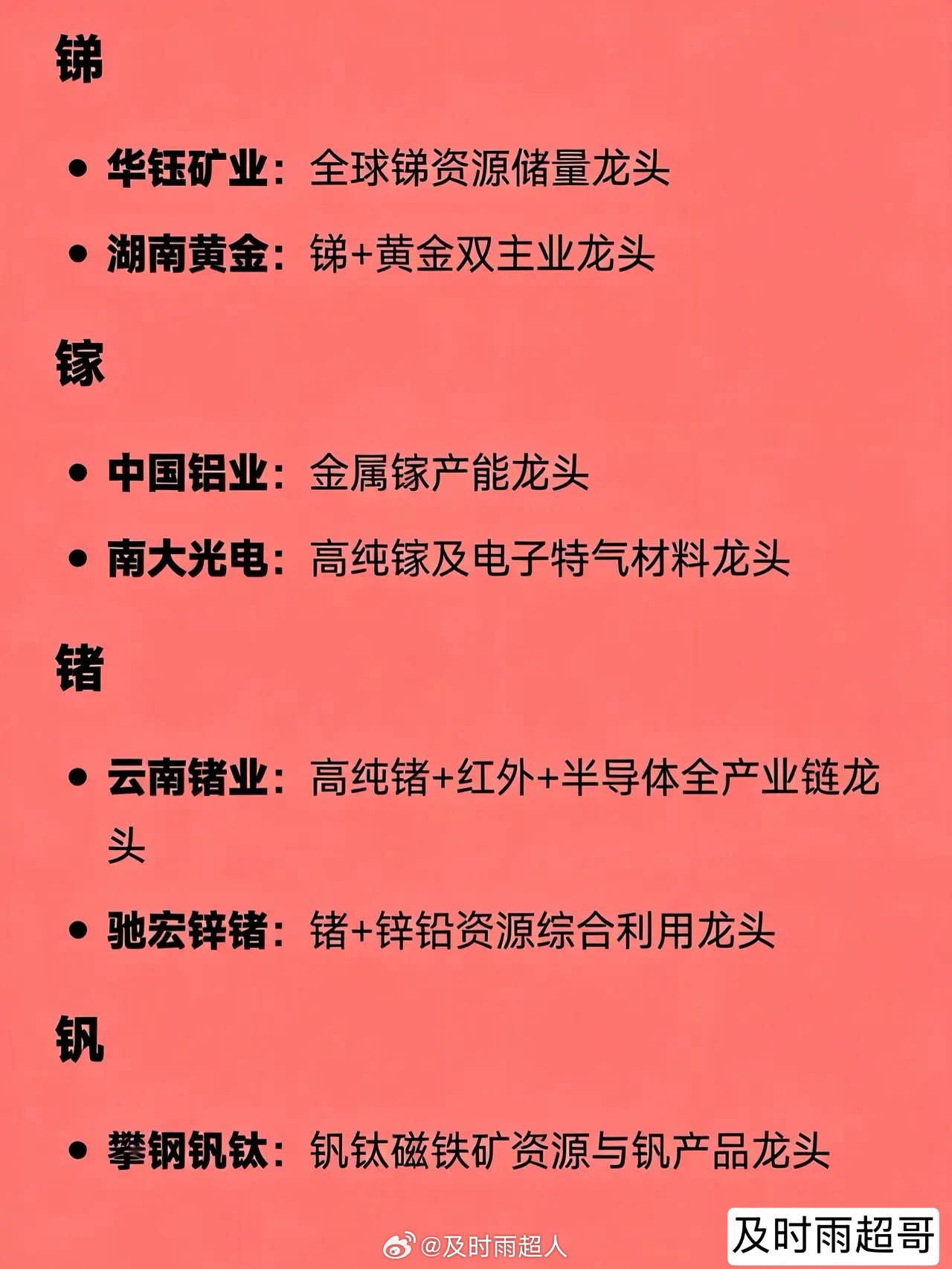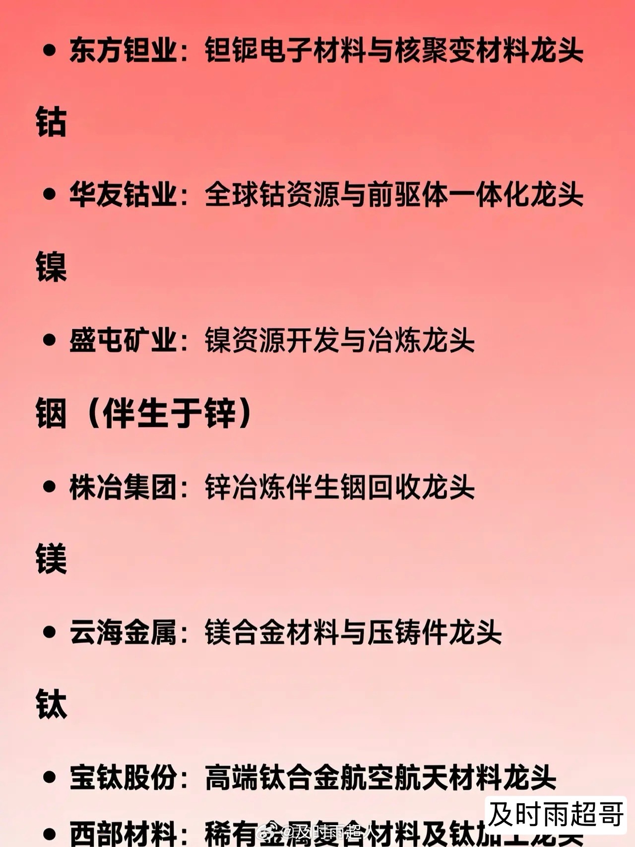 小金属概念相关龙头企业全汇总
