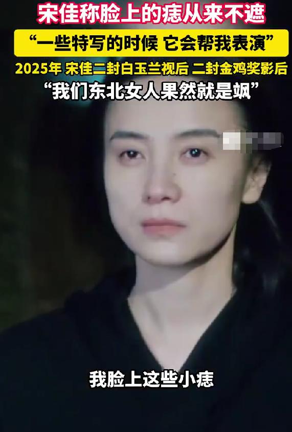 宋佳称脸上的痣从来不遮,直言很美还能帮表演,双料影后视后实至名归 宋佳近期在采访中谈及脸上的痣,态度坦荡又自信,直言自己从来不会刻意遮盖,还大方夸赞:“我觉得很好看,很美”,圈粉无数。 她进一步分享,这些自然生长的痣不仅不是瑕疵,反而很有价值,“尤其是拍一些特写的时候,它会帮我表演”,尽显专业素养。 宋佳还感慨,自然的东西本身就有生命力,刻意遮掩面部原生细节,反而会破坏这份真实,这份通透的审美态度引发广泛共鸣。 这份从容自信的底气,源于她过硬的演技实力,2025年对宋佳而言堪称丰收年,成功二封白玉兰视后、二封金鸡奖影后,双料加身。 据悉,她凭《山花烂漫时》中张桂梅一角二封白玉兰视后,击败多位实力对手,将燃灯校长的形象刻画得有血有肉。 电影领域她同样亮眼,凭借《好东西》中单亲妈妈王铁梅的角色二封金鸡影后,用细腻表演勾勒当代女性的精神图景。 宋佳拍戏时从不让化妆师遮盖脸上的痣,哪怕是多机位特写镜头,也坚持保留原生细节,与剧组追求真实的理念高度契合。 网友纷纷为她点赞,称赞她打破娱乐圈“零瑕疵”审美惯性,不遮痣的样子既有辨识度,更透着不迎合的松弛感。 不同于很多艺人刻意追求完美妆容,宋佳坦然接纳自身特点,这份自信不仅让她更有魅力,也让角色多了几分真实质感。 如今四十多岁的宋佳,不畏惧岁月痕迹,不刻意修饰瑕疵,用实力证明,真正的美从不是千篇一律,而是自然与自信的绽放。 作为双料影后视后,宋佳用一部部作品站稳脚跟,不遮痣的坚持,更是她对表演、对自我的真诚,这份清醒太难得。