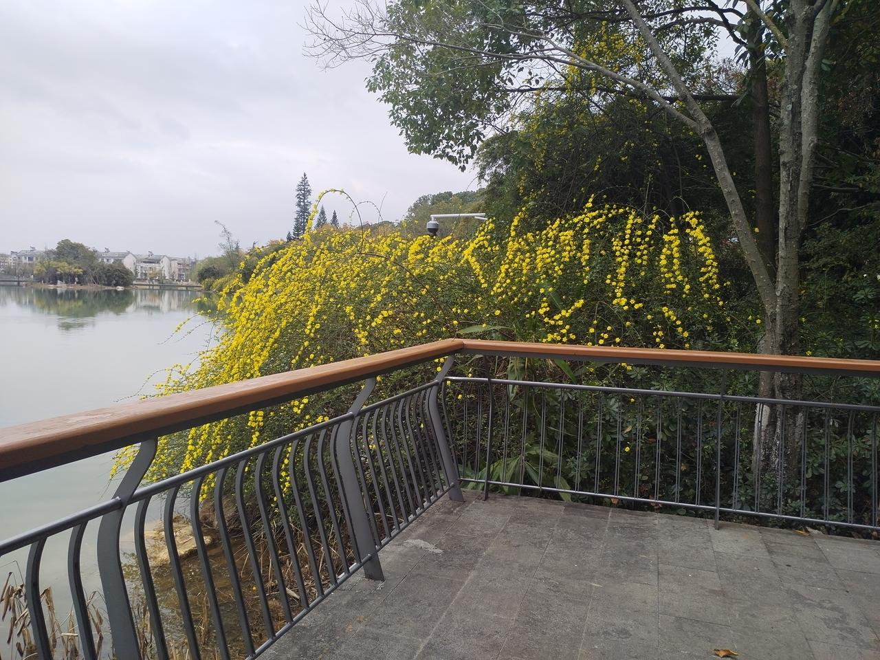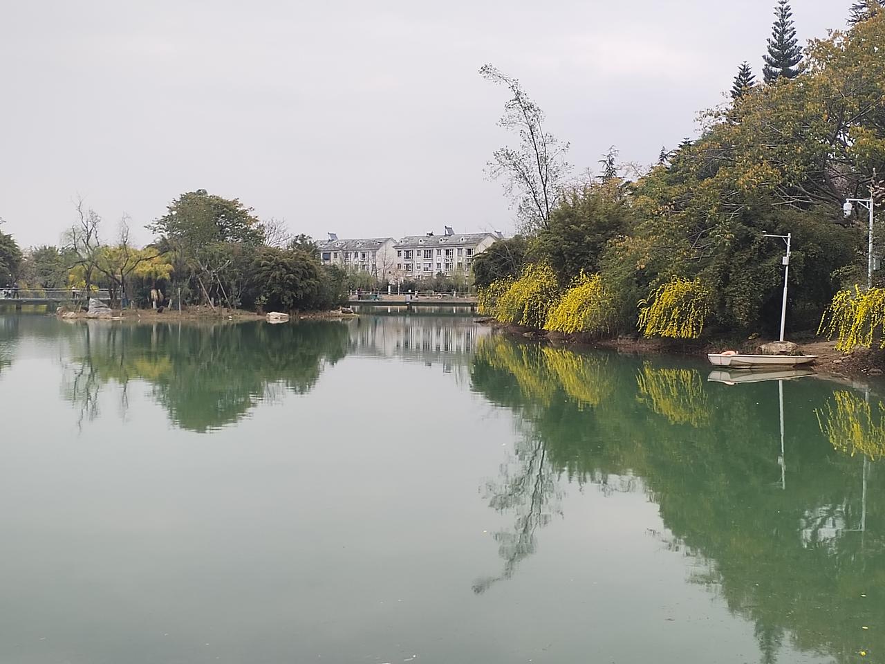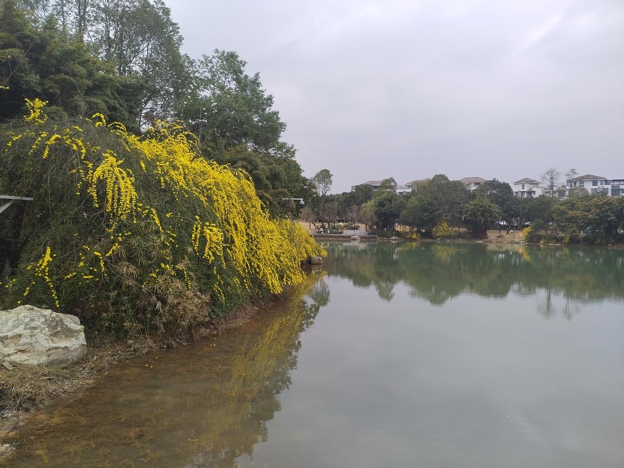今天是大年十一,春光明媚,艳阳高照。怀着愉悦的心情,打卡绵阳园艺山,逛一逛美丽的园艺湖。 沿着园艺湖静谧林间小径,曲折蜿蜒,翠绿掩映,鸟啼声声。 远眺清澈的湖水,微风拂过,湖畔垂柳,轻摇倩影,碧水如镜,倒映天光。 春天来了, 环湖四周, 迎春花儿悄然绽放, 一片片, 一枺金黄, 如梦似幻, 点缀着湖畔长廊。 花儿轻轻摇曳, 在春风中诉说生命的希望。 迎春花儿, 犹如晨曦中的繁星, 照亮了沉睡的大地, 温暖了孤寂的心房。 为美丽幽静园艺湖, 披上了节日的盛装。 园艺湖,运离了喧嚣的城市,静谧凼然的自然环境,洗涤了节日的忧烦。 环湖一周,心情愉悦,脚步轻松自然。