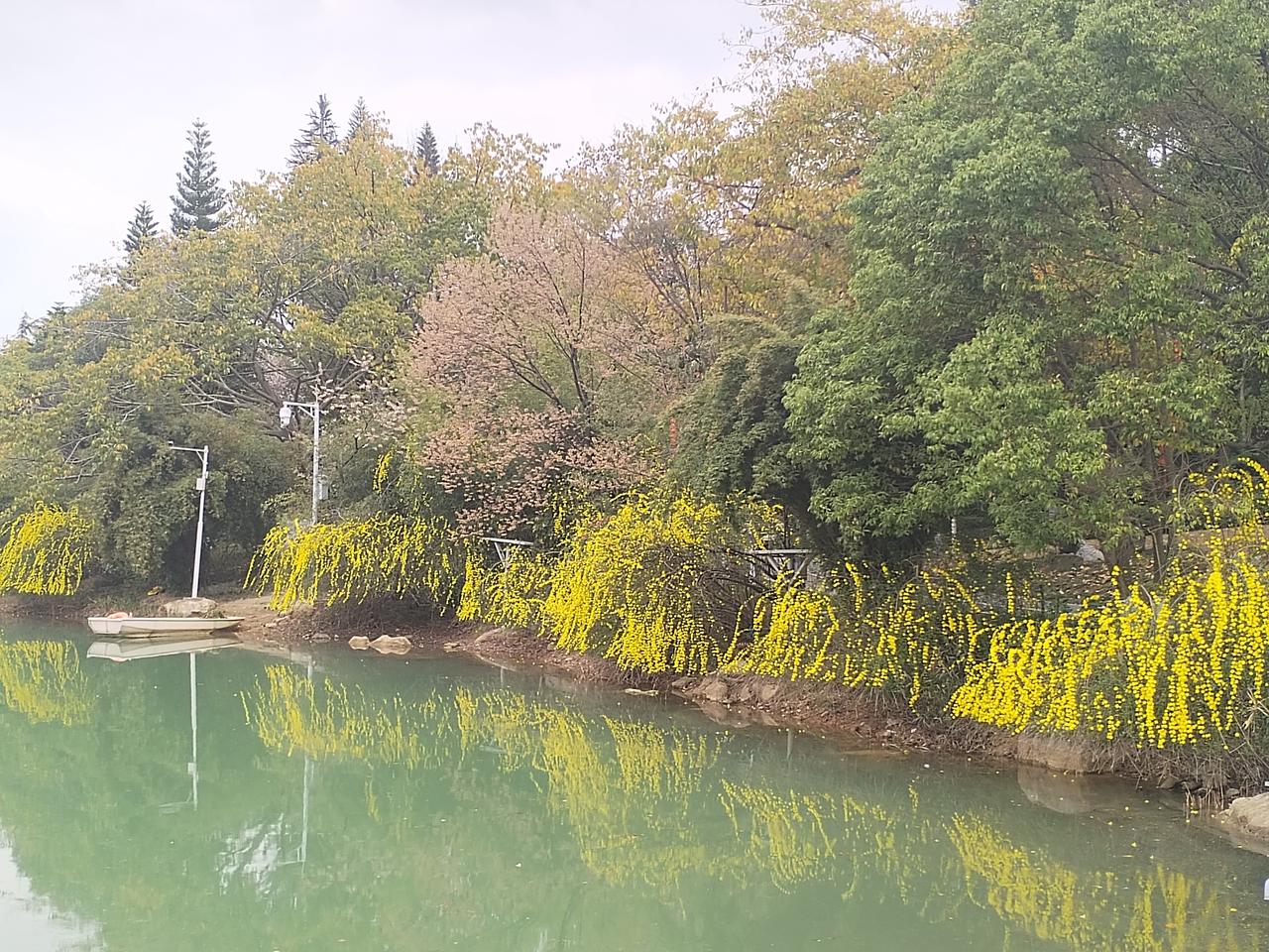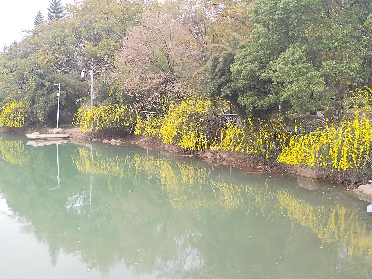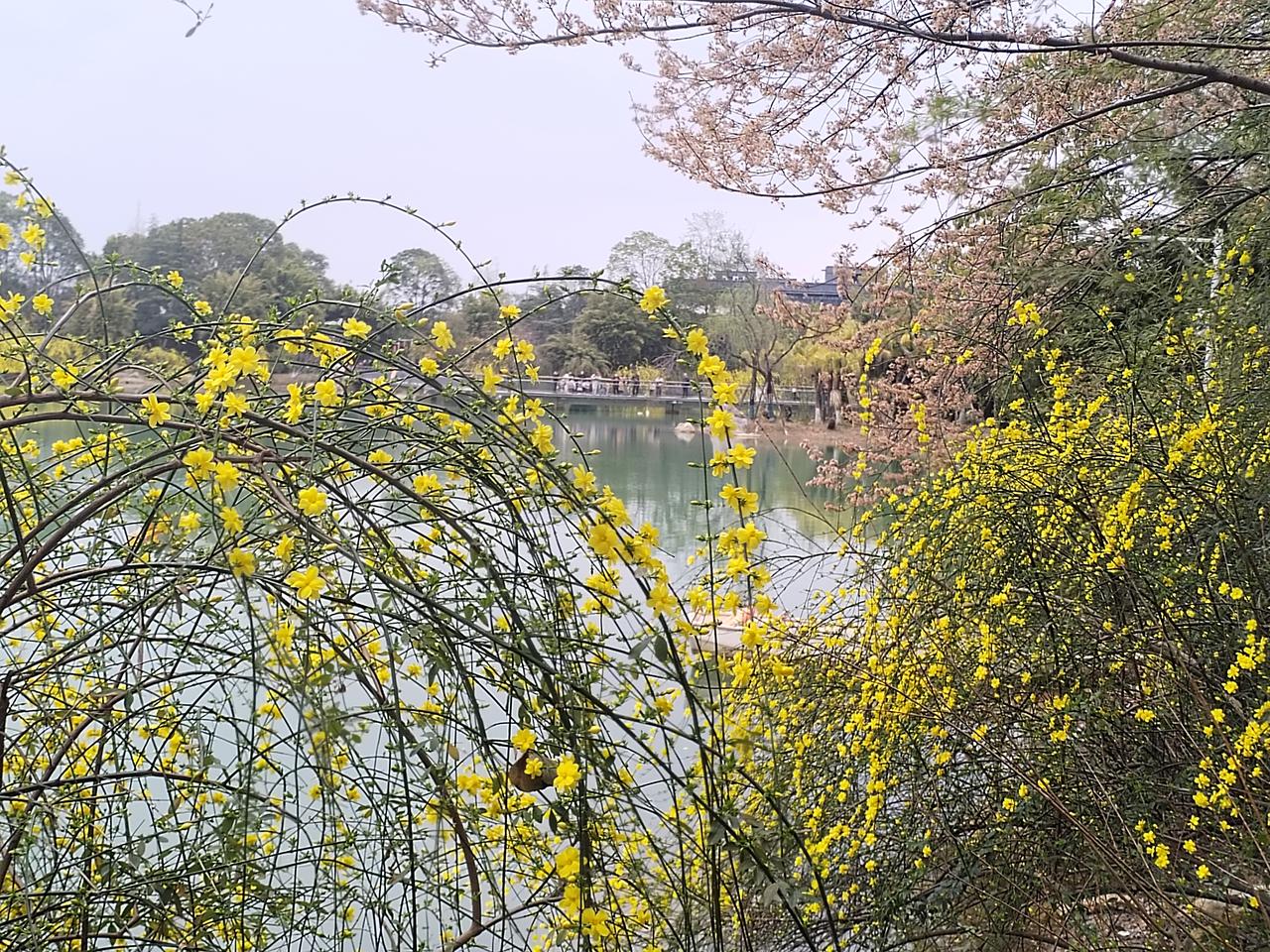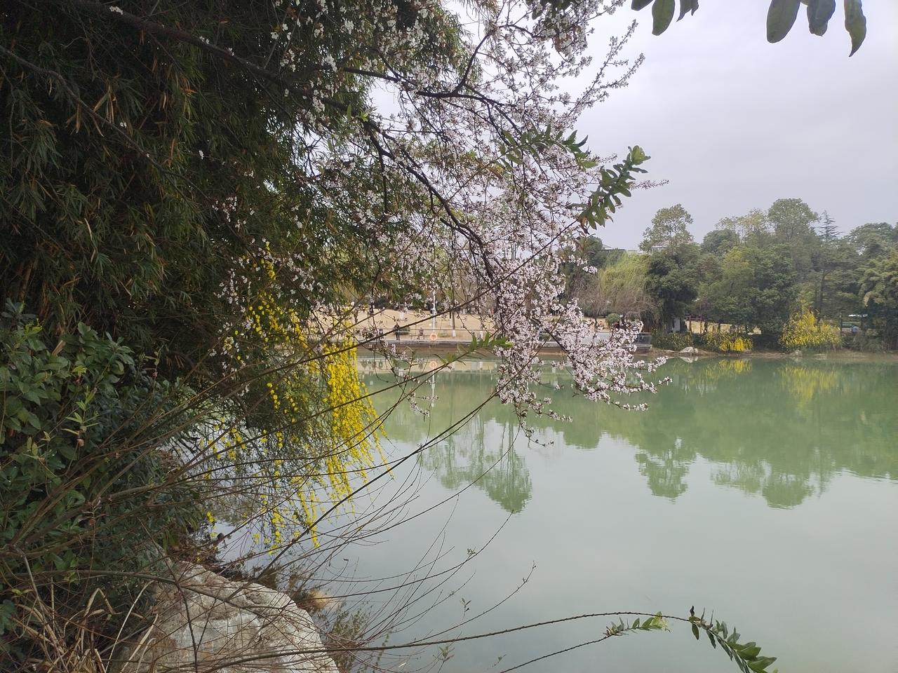 今天是大年十一,春光明媚,艳阳高照。怀着愉悦的心情,打卡绵阳园艺山,逛一逛美丽的园艺湖。 沿着园艺湖静谧林间小径,曲折蜿蜒,翠绿掩映,鸟啼声声。 远眺清澈的湖水,微风拂过,湖畔垂柳,轻摇倩影,碧水如镜,倒映天光。 春天来了, 环湖四周, 迎春花儿悄然绽放, 一片片, 一枺金黄, 如梦似幻, 点缀着湖畔长廊。 花儿轻轻摇曳, 在春风中诉说生命的希望。 迎春花儿, 犹如晨曦中的繁星, 照亮了沉睡的大地, 温暖了孤寂的心房。 为美丽幽静园艺湖, 披上了节日的盛装。 园艺湖,运离了喧嚣的城市,静谧凼然的自然环境,洗涤了节日的忧烦。 环湖一周,心情愉悦,脚步轻松自然。